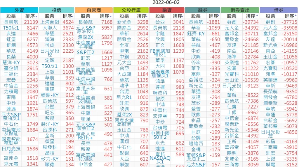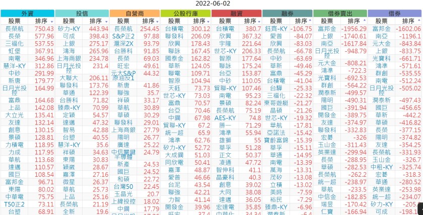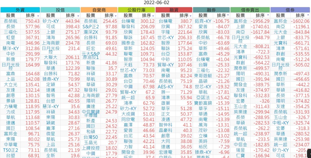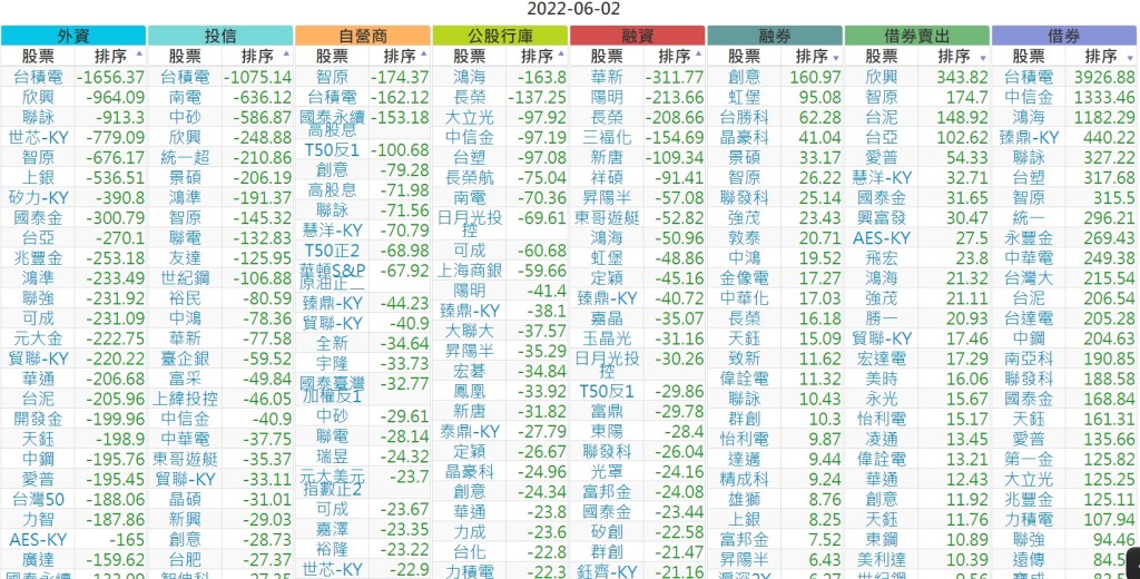 2022-0602上市【外資、投信】買賣超個股