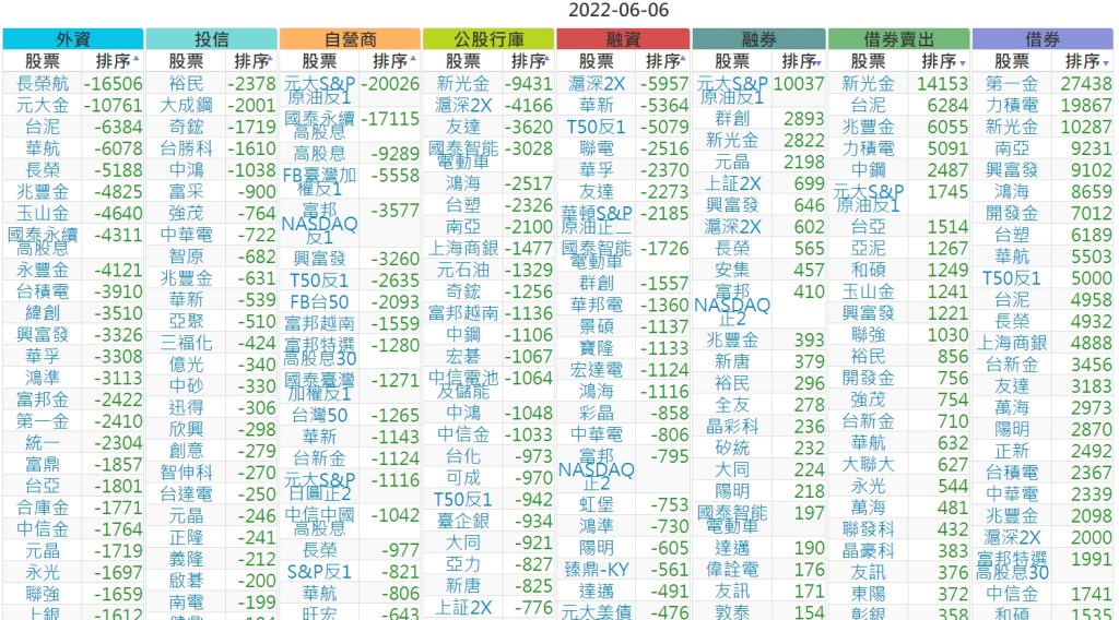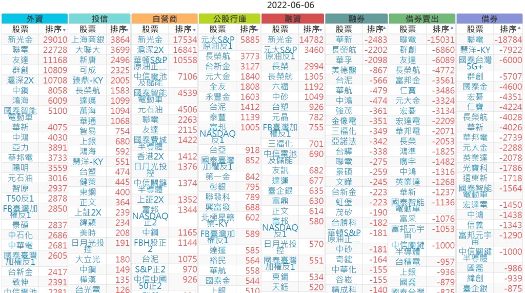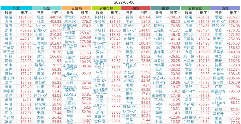 2022-0606上市【外資、投信】買賣超個股