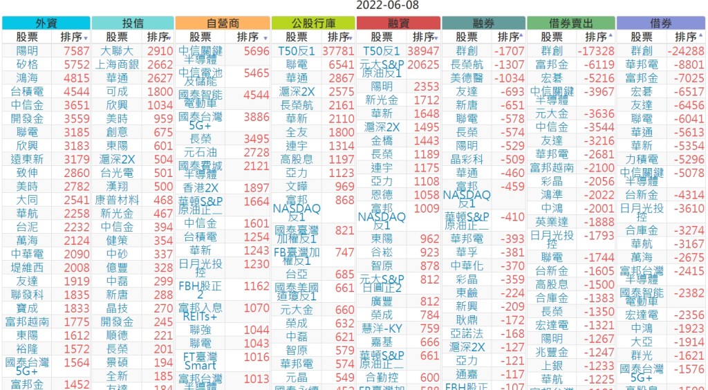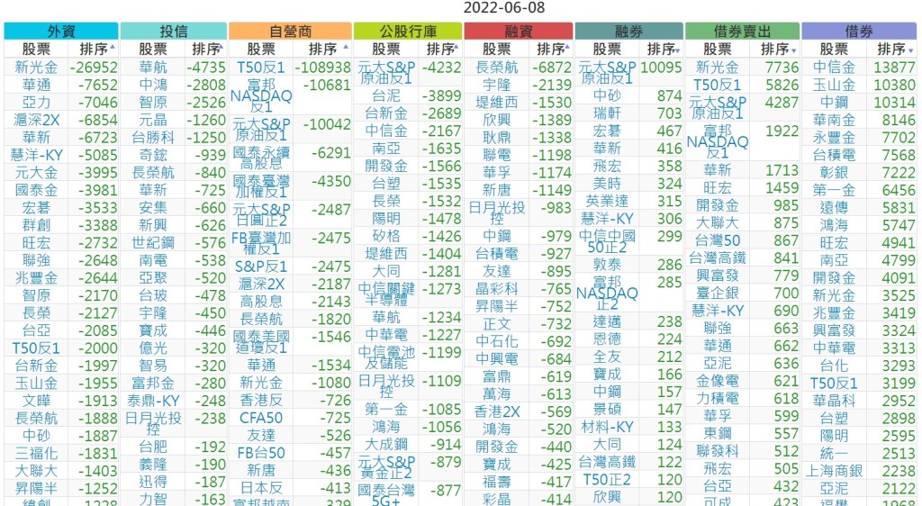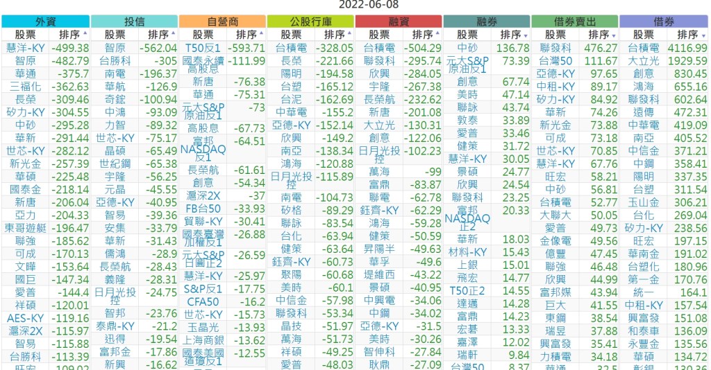 上市:【外資、投信】賣超(依張數)   (單位:張數)