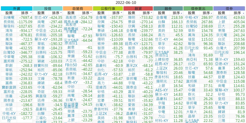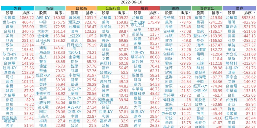 2022-0610上市【外資、投信】買賣超個股