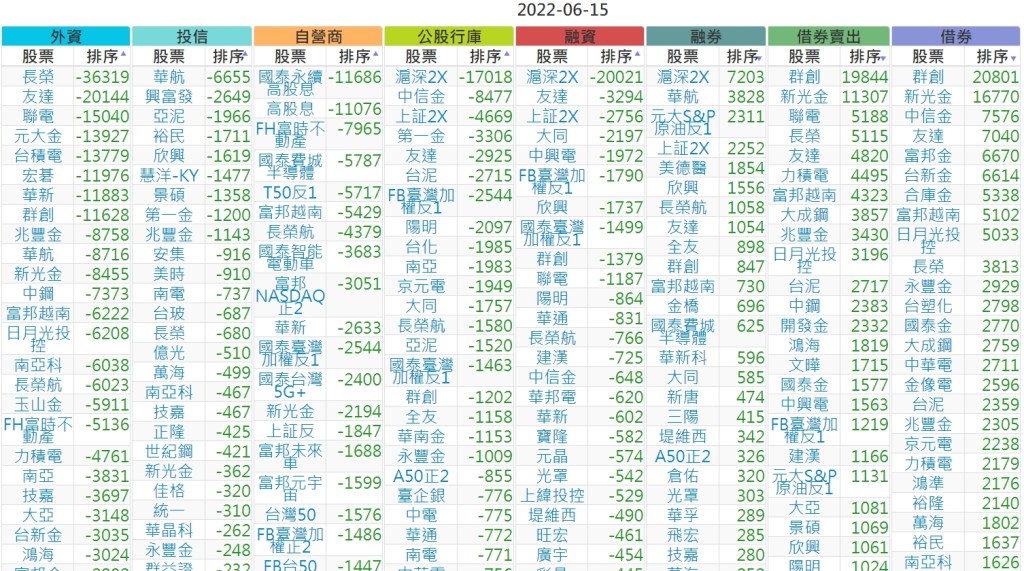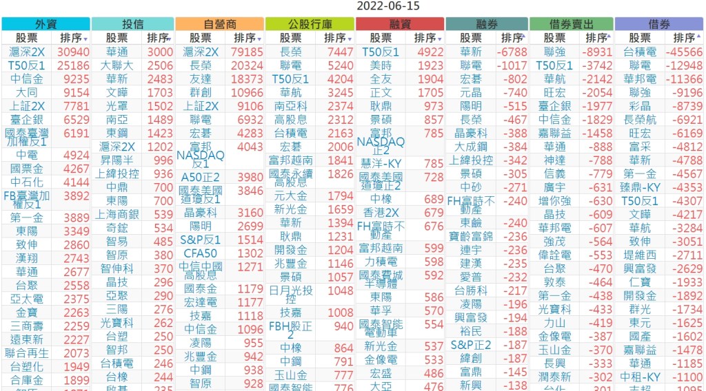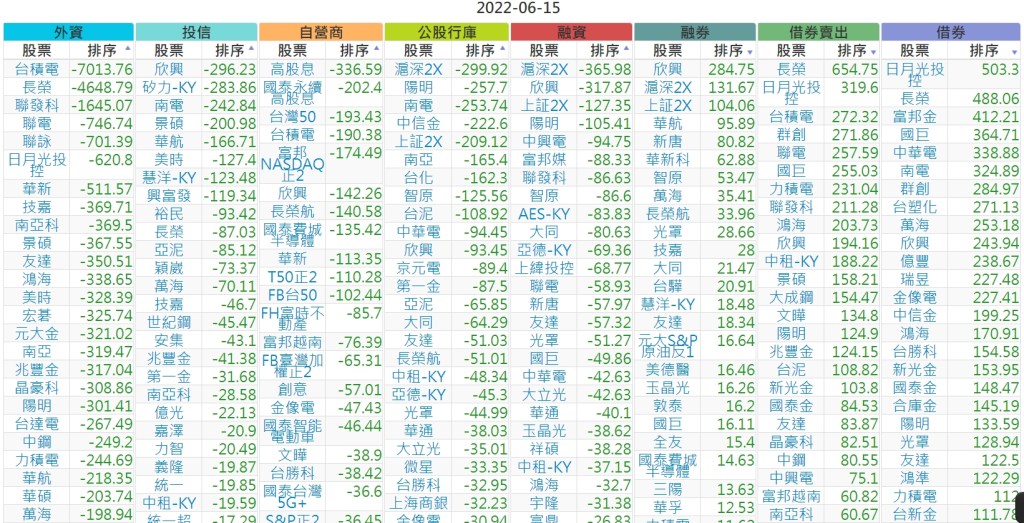 上市:【外資、投信】賣超(依張數)   (單位:張數)