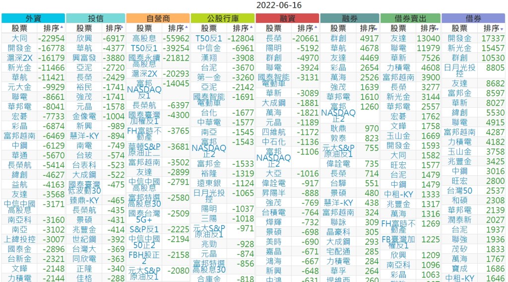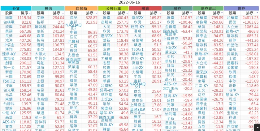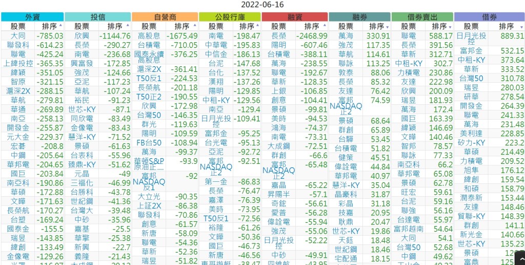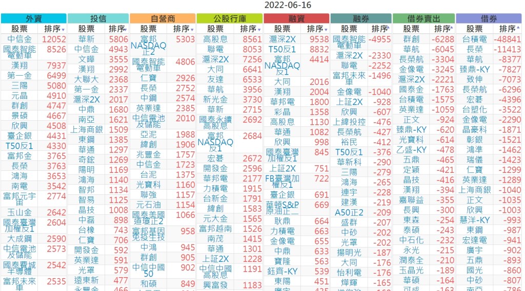 2022-0616上市【外資、投信】買賣超個股