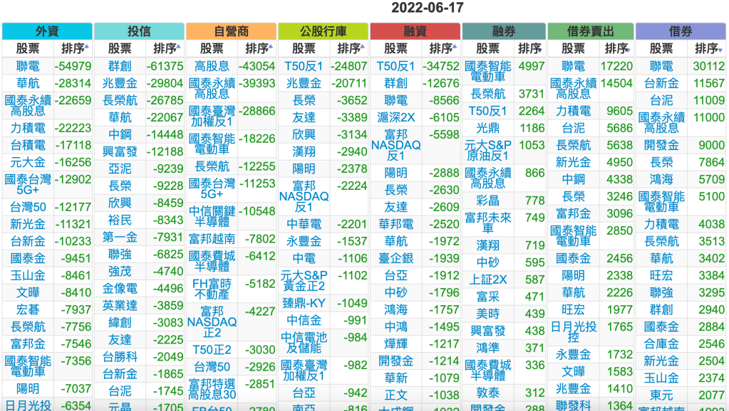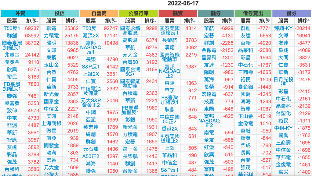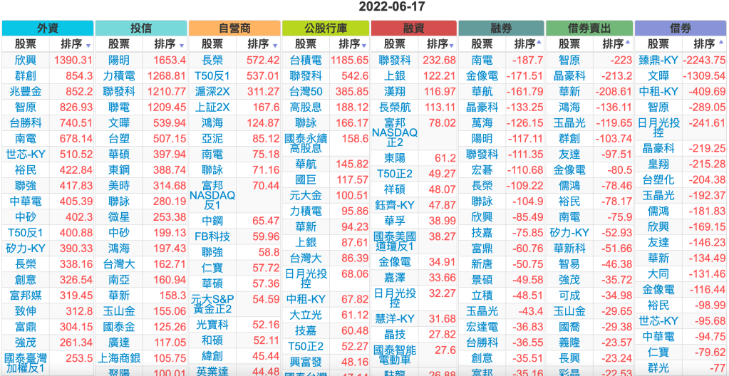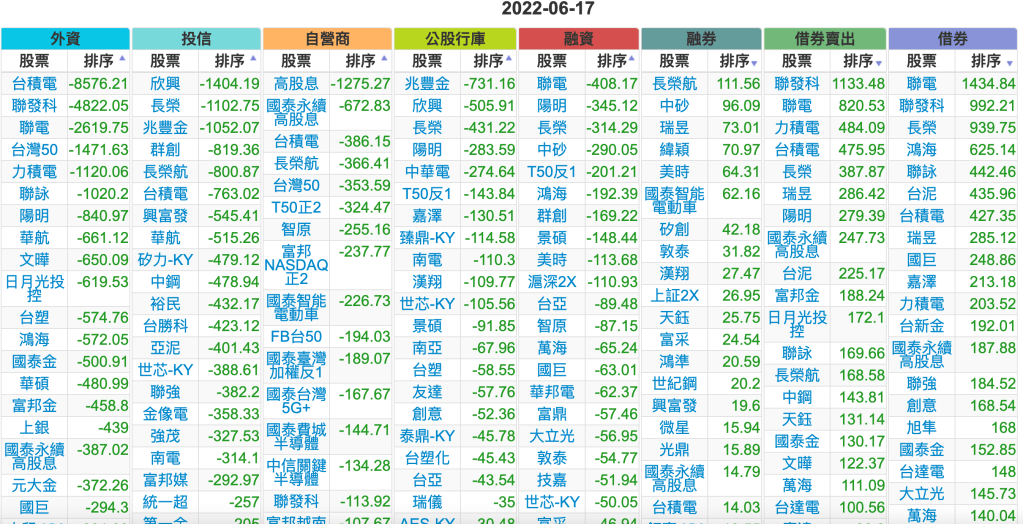 2022-0617上市【外資、投信】買賣超個股