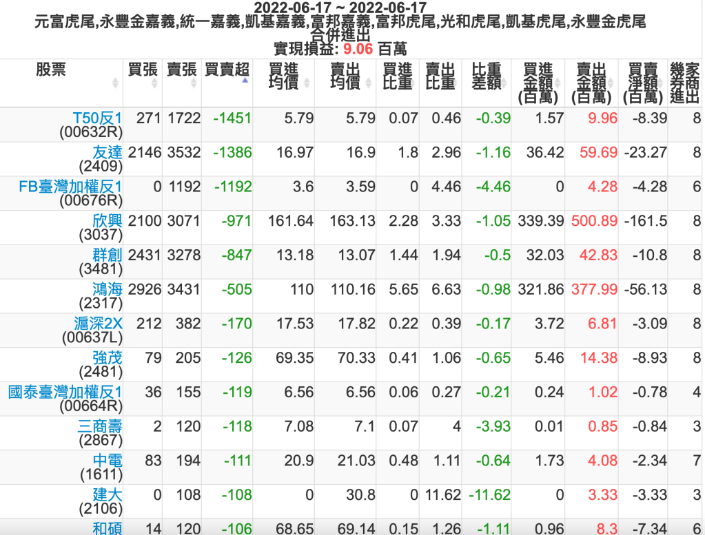 『元富虎尾』,『永豐金嘉義』,『統一嘉義』,『凱基嘉義』,『富邦嘉義』,『富邦虎尾』,『光和虎尾』,『凱基虎尾』,『永豐金虎尾』。