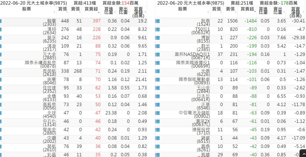 2022-0621關鍵券商買賣超