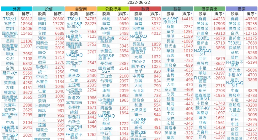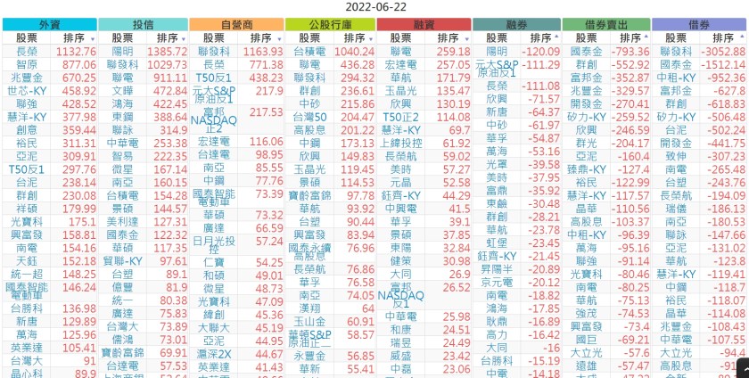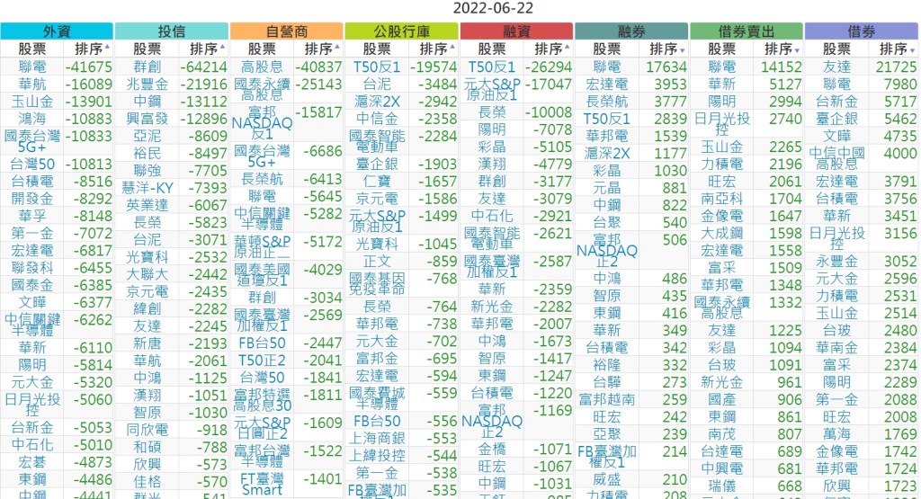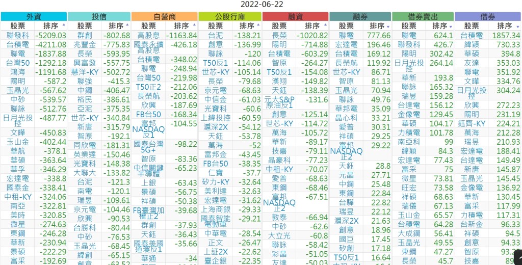 上市:【外資、投信】賣超(依張數)   (單位:張數)