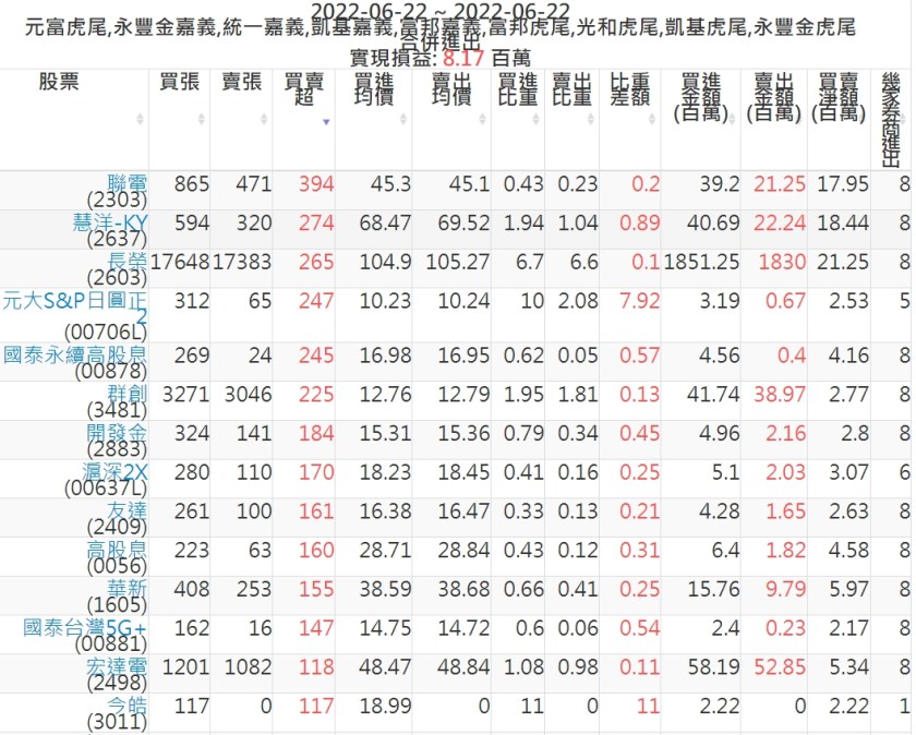 2022-0622主力買賣超個股