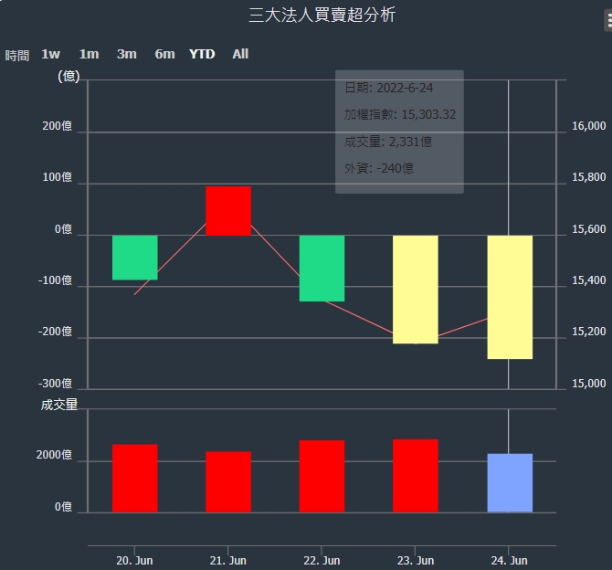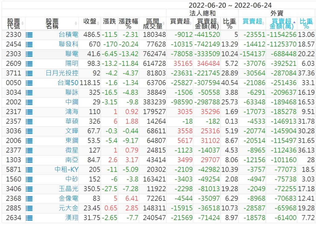外資本周累積【賣超】約240億元。