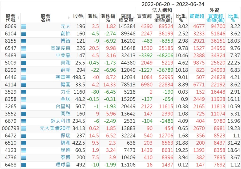 【上櫃外資買超個股】(以金額排行,單位:萬)