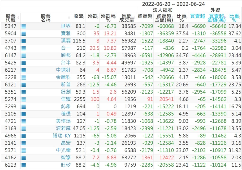 【上櫃外資賣超個股】(以金額排行,單位:萬)