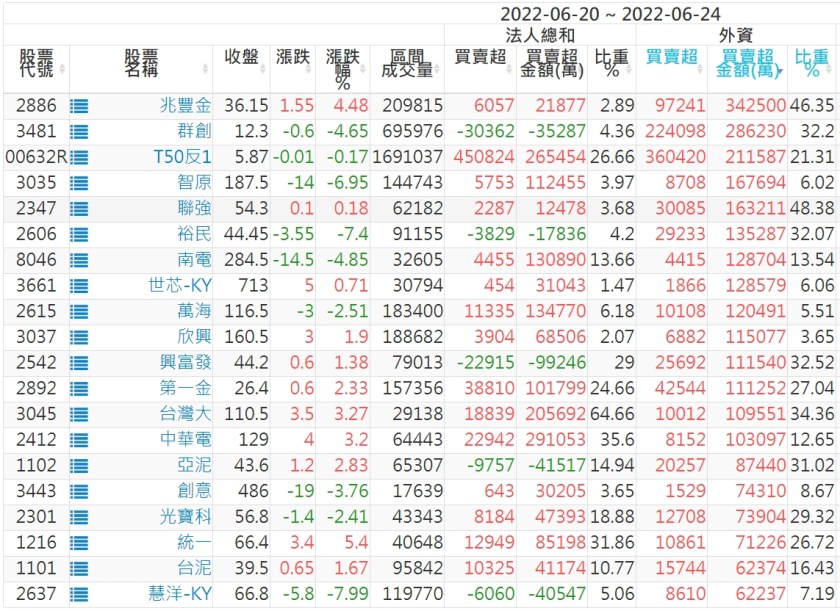 外資本周累積【賣超】約240億元。