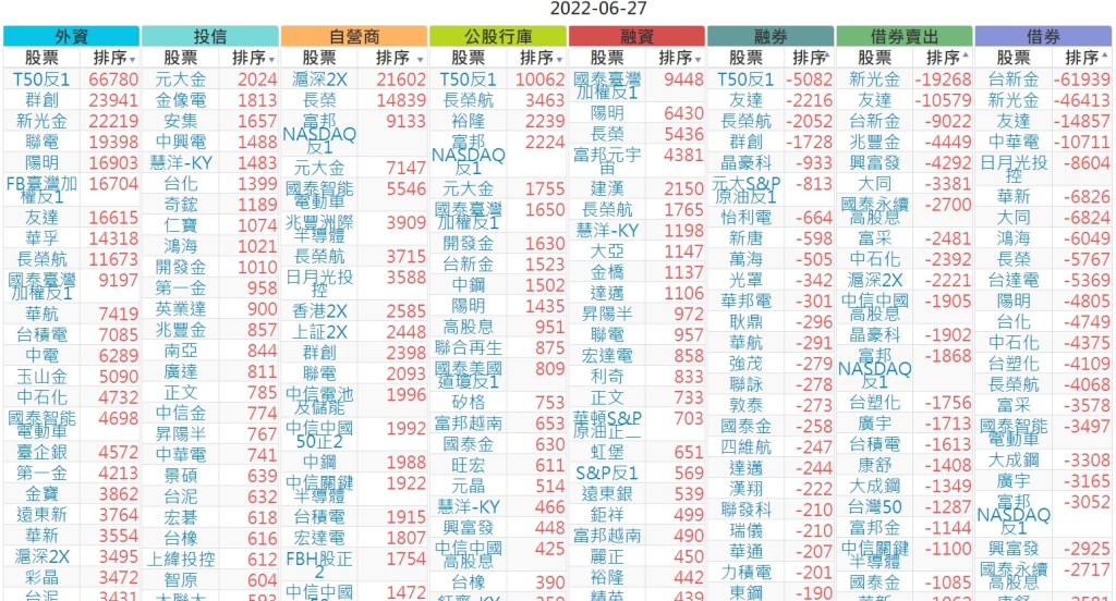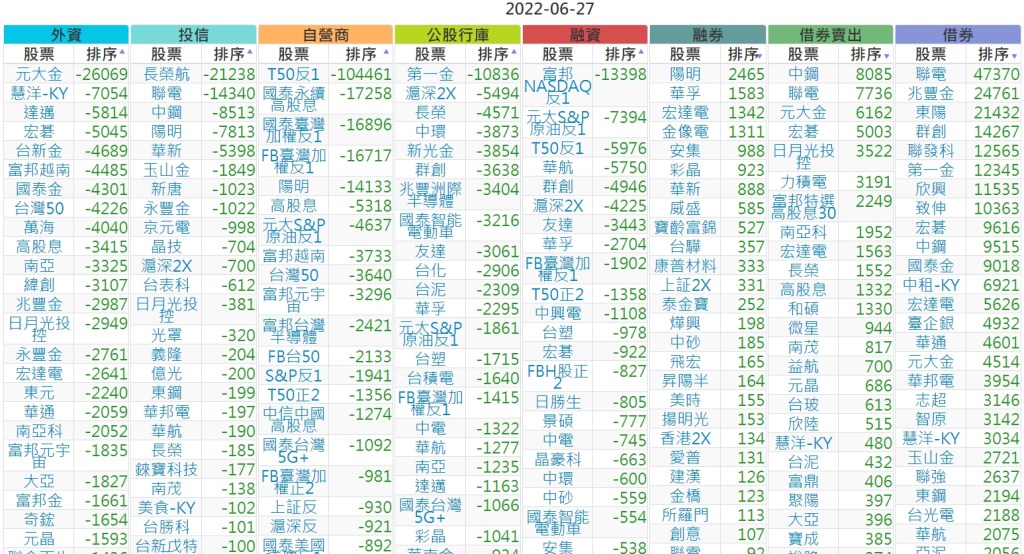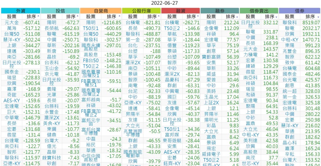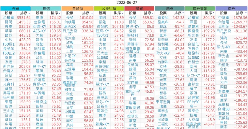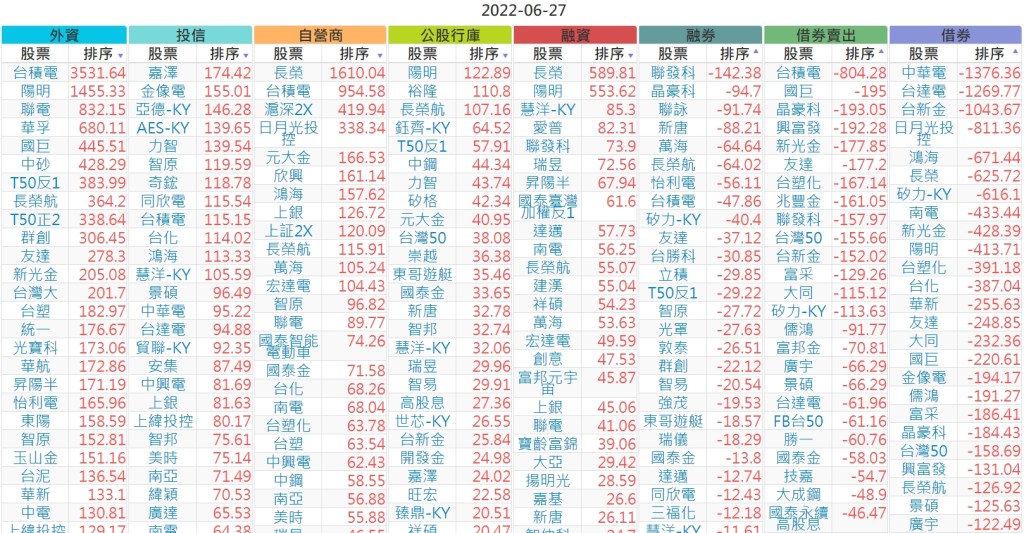 2022-0627上市【外資、投信】買賣超個股