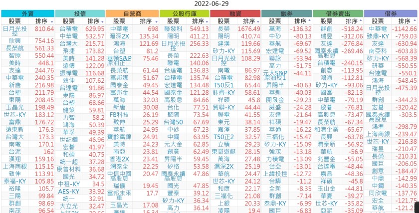 上市:【外資、投信】賣超(依張數)   (單位:張數)