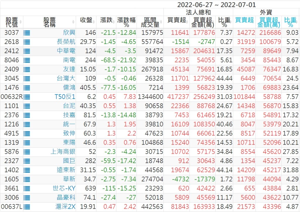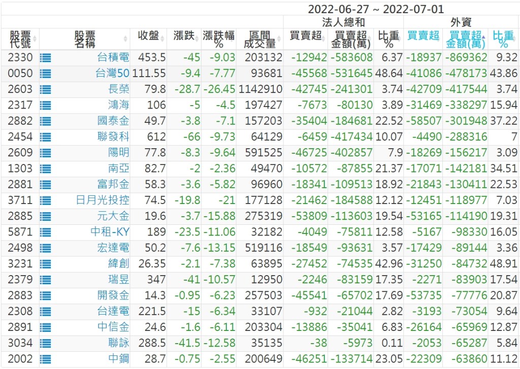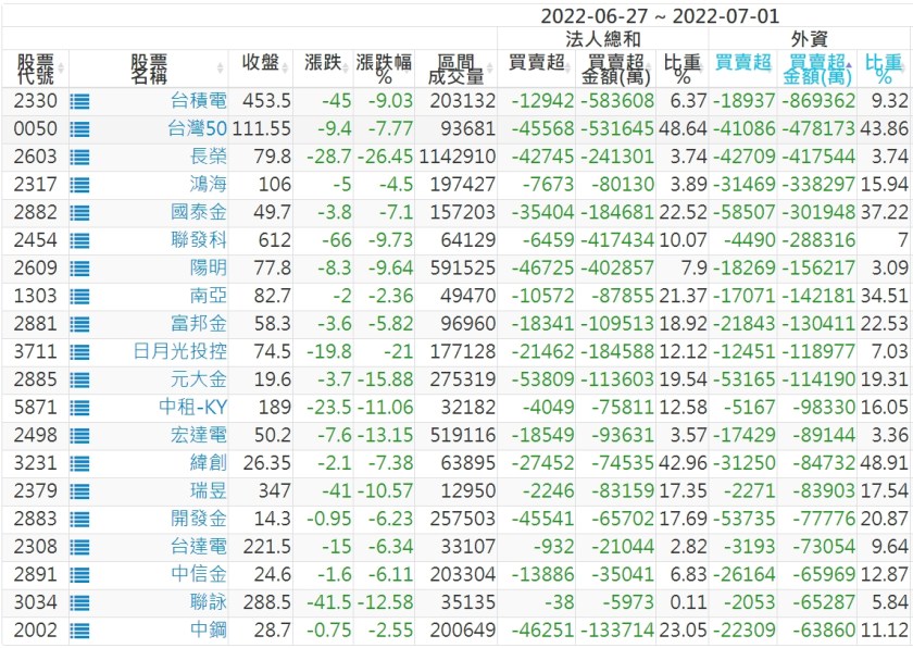 【上市外資賣超個股】(以金額排行,單位:萬)
