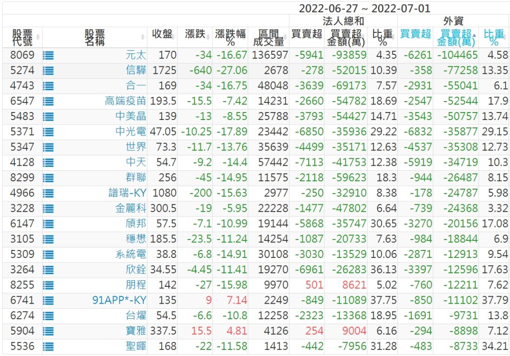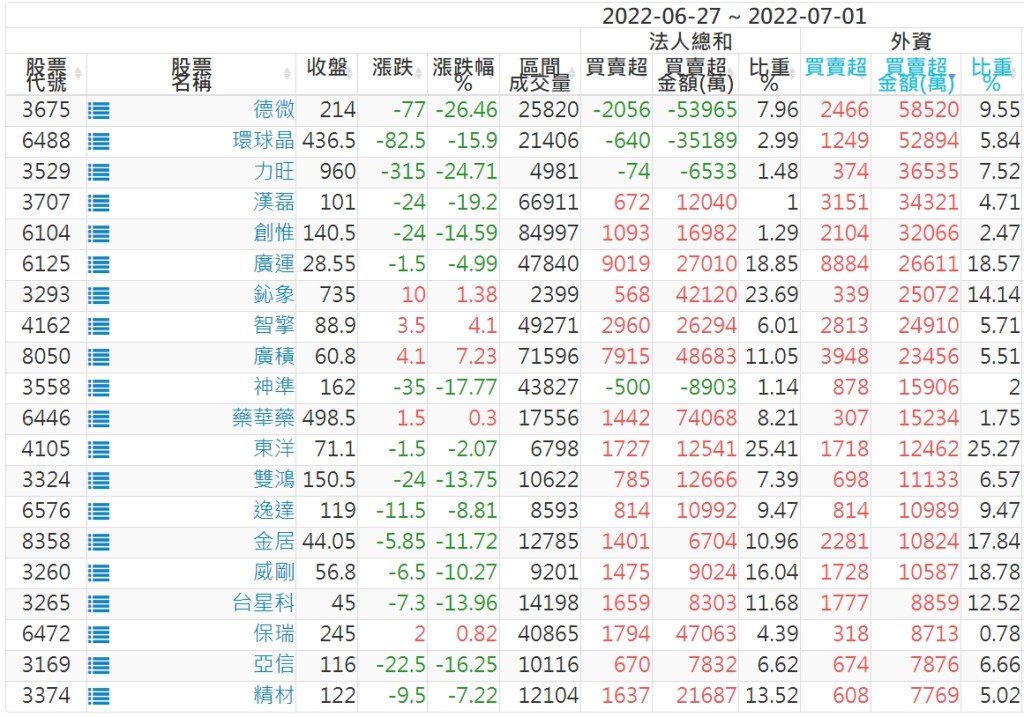 【上櫃外資賣超個股】(以金額排行,單位:萬)
