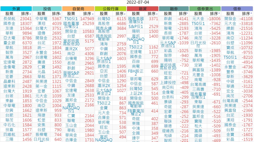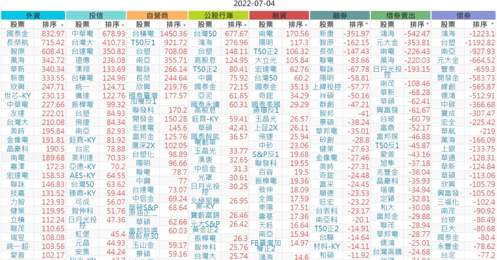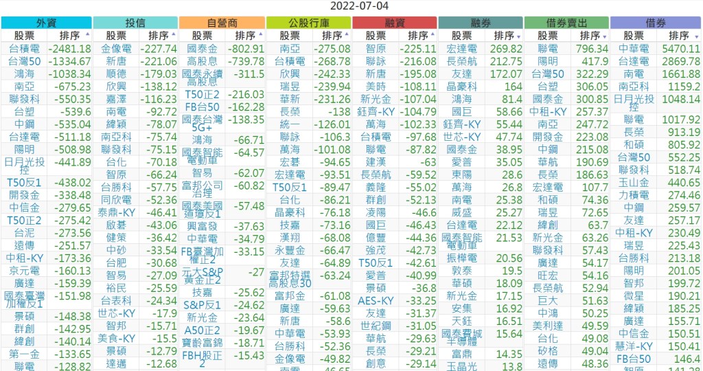 上市:【外資、投信】賣超(依張數)   (單位:張數)