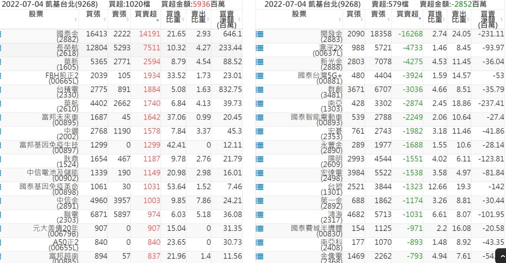 2022-0704關鍵券商買賣超
