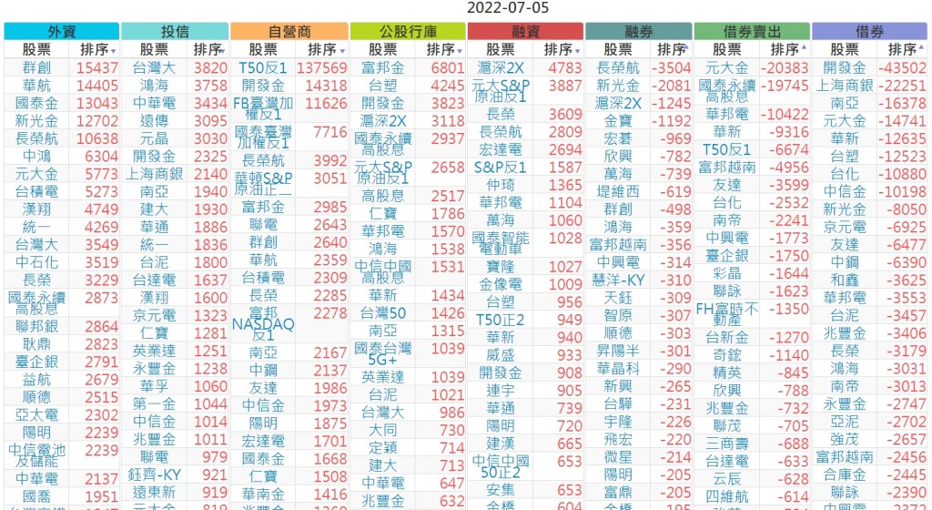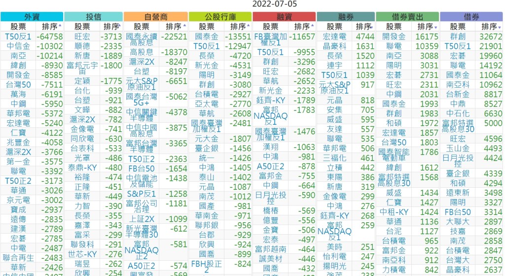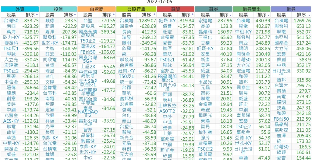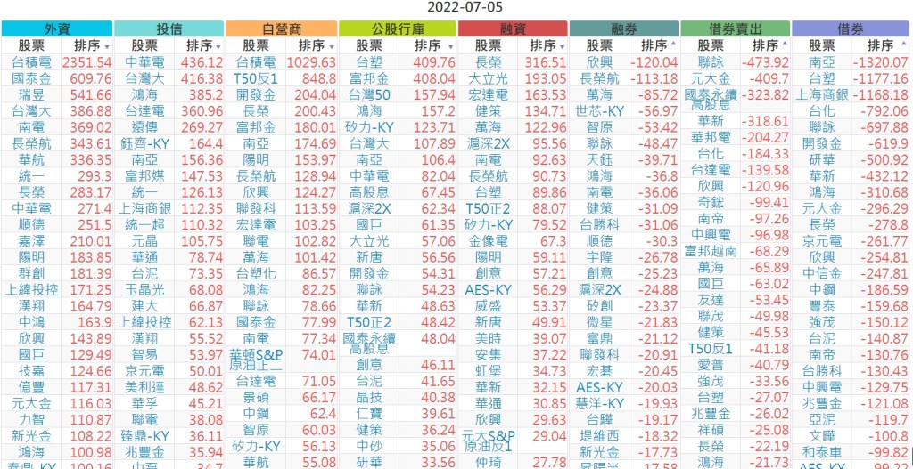 2022-0705上市【外資、投信】買賣超個股