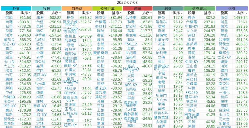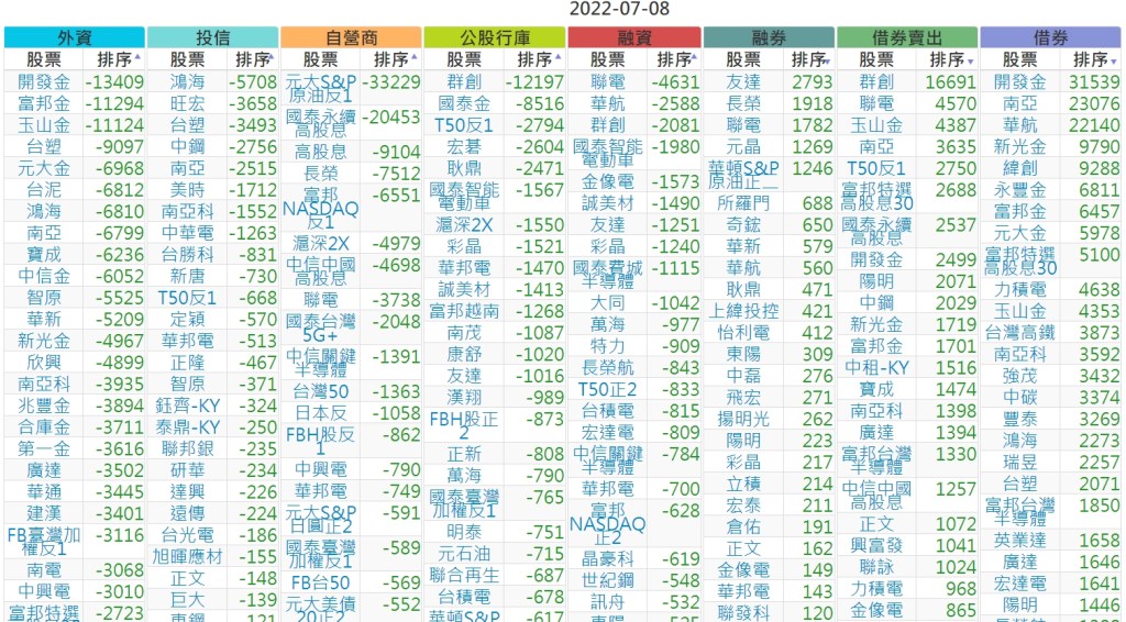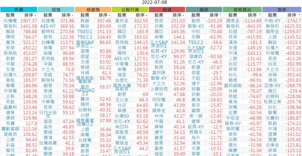 2022-0708上市【外資、投信】買賣超個股