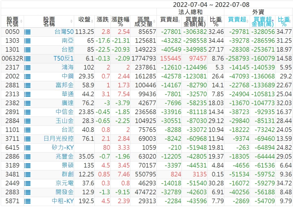【上市外資賣超個股】(以金額排行,單位:萬)