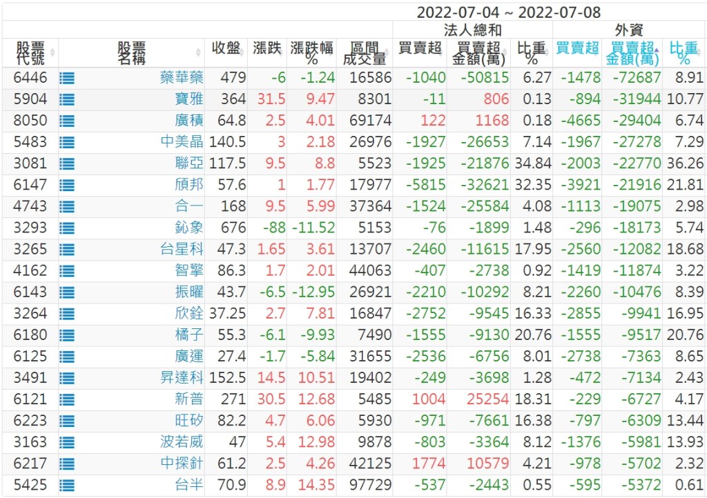 【上櫃外資賣超個股】(以金額排行,單位:萬)