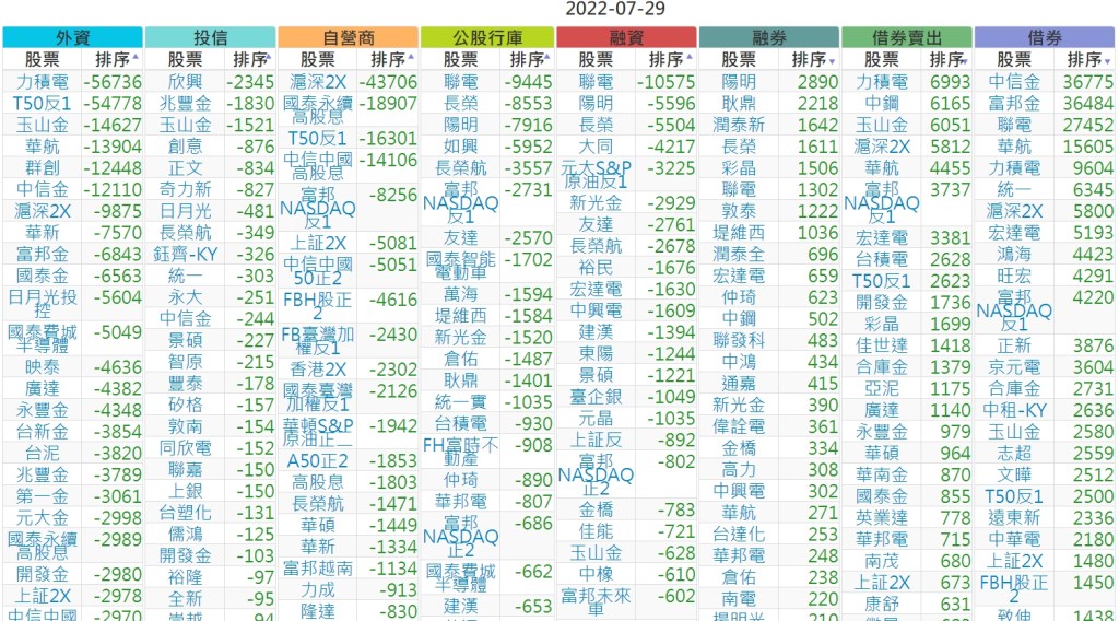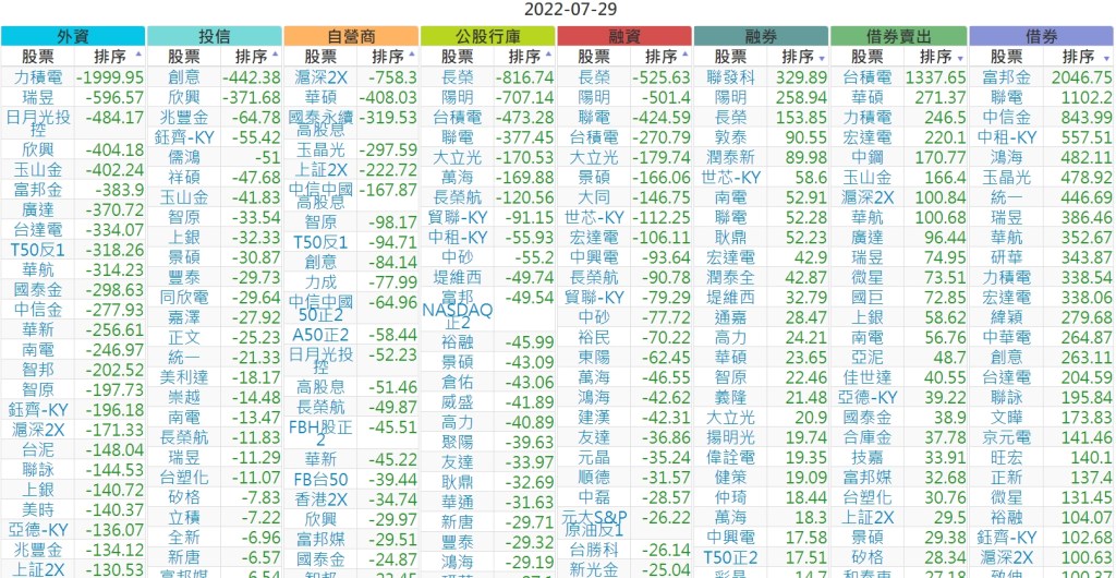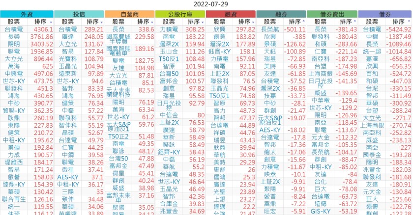 2022-0729上市【外資、投信】買賣超個股