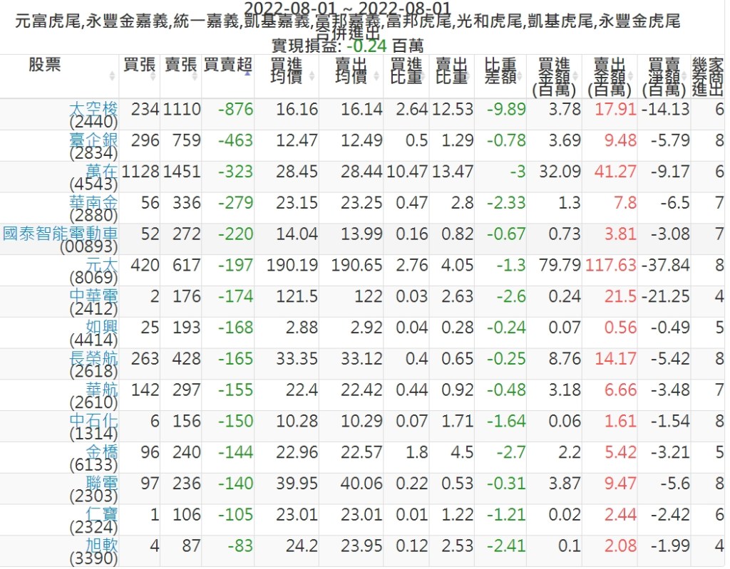 『元富虎尾』,『永豐金嘉義』,『統一嘉義』,『凱基嘉義』,『富邦嘉義』,『富邦虎尾』,『光和虎尾』,『凱基虎尾』,『永豐金虎尾』。