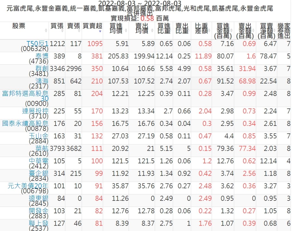 『元富虎尾』,『永豐金嘉義』,『統一嘉義』,『凱基嘉義』,『富邦嘉義』,『富邦虎尾』,『光和虎尾』,『凱基虎尾』,『永豐金虎尾』。