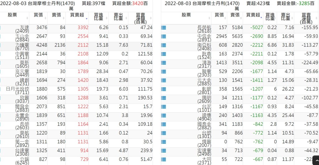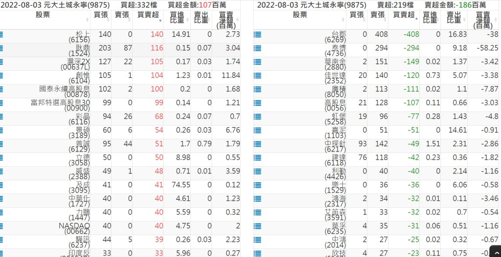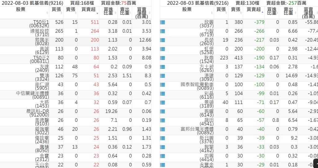 關鍵券商買賣超: