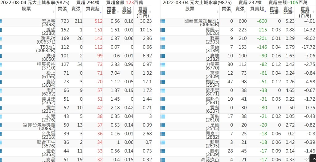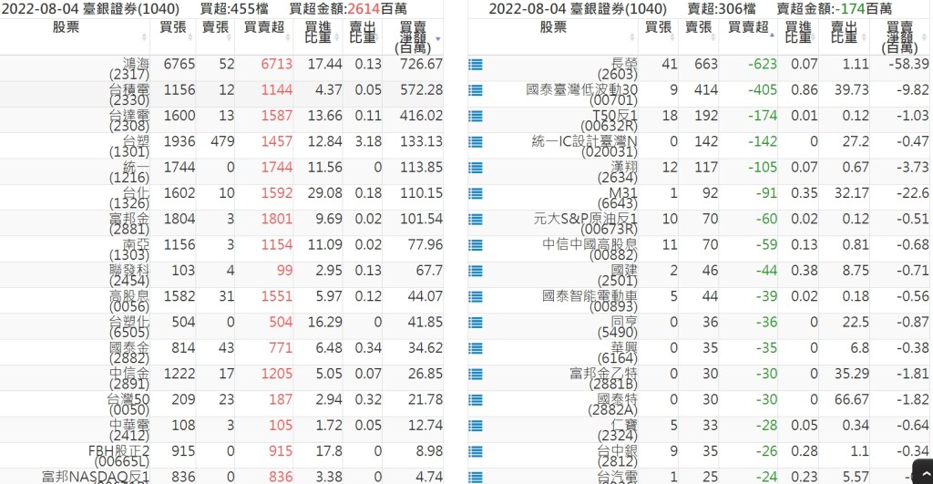 2022-0804關鍵券商買賣超