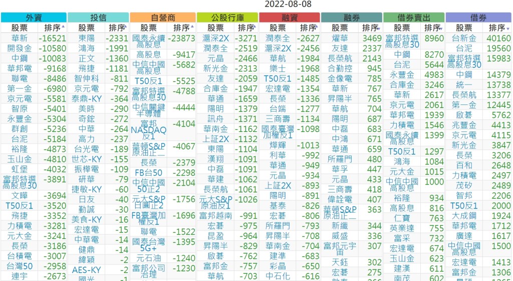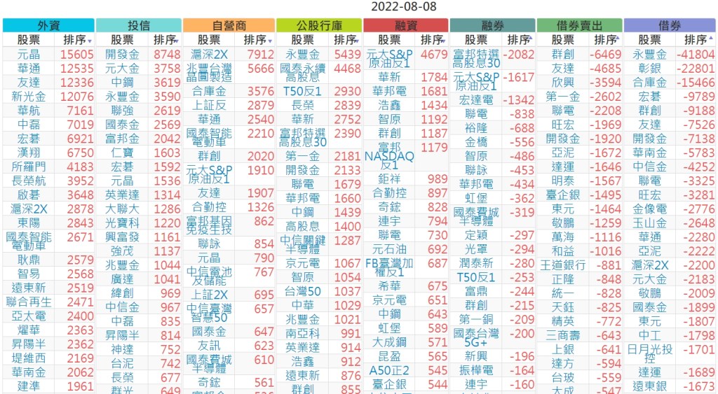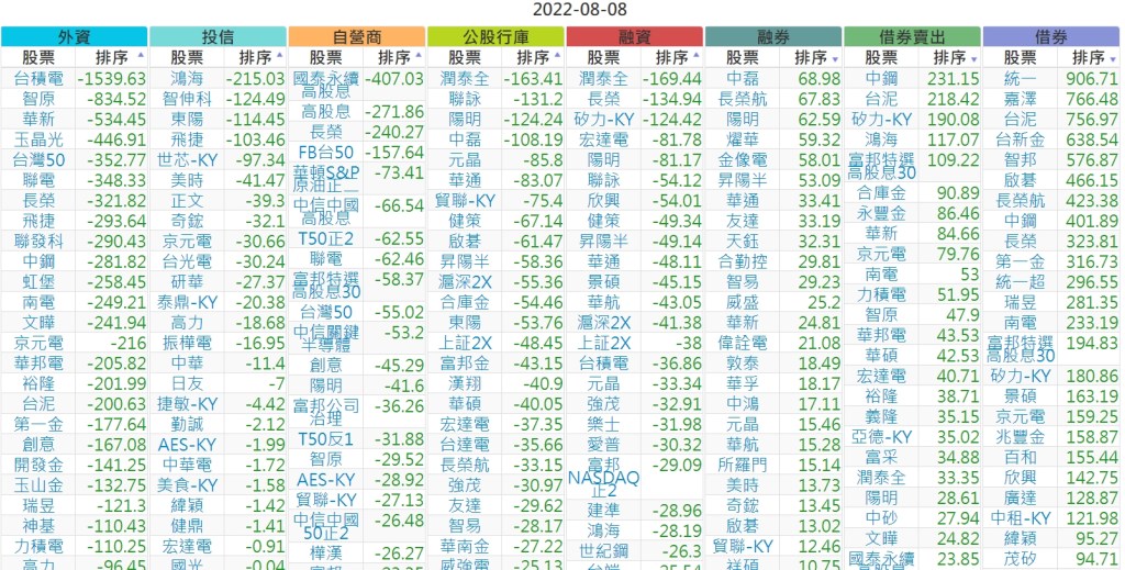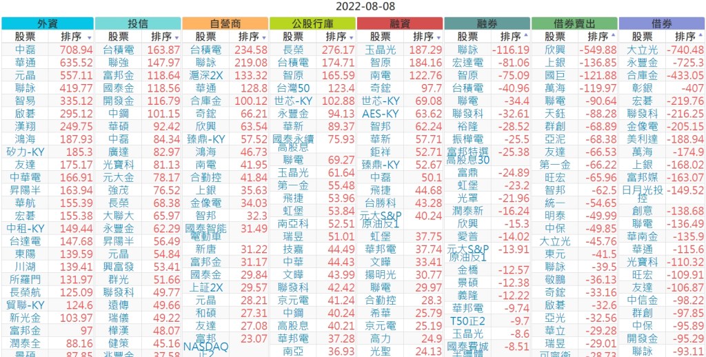 2022-0808上市【外資、投信】買賣超個股