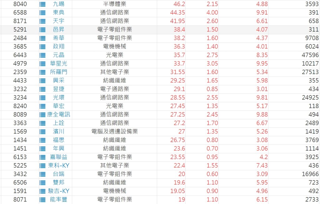 b.當日漲幅 > 2%