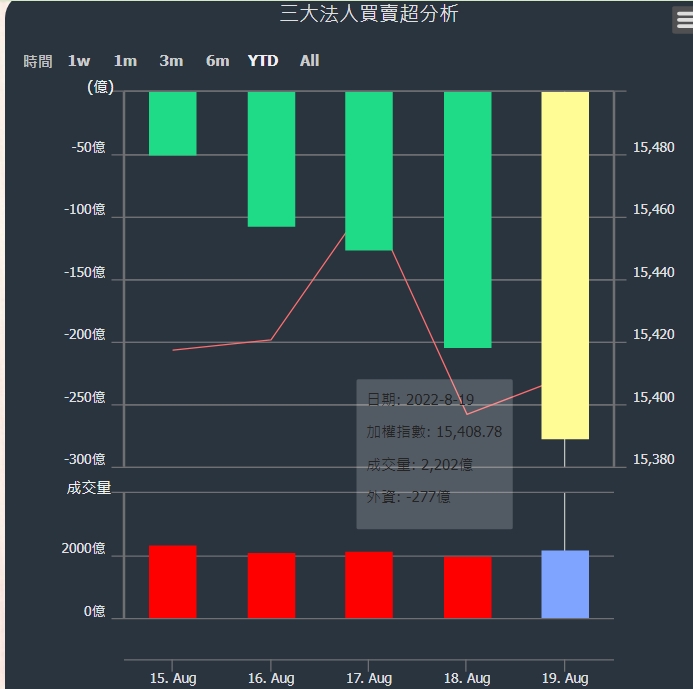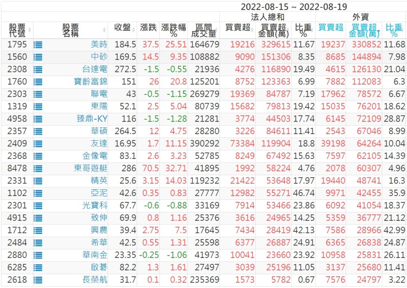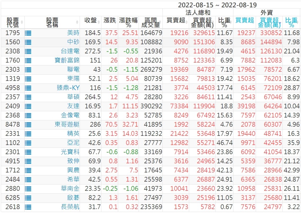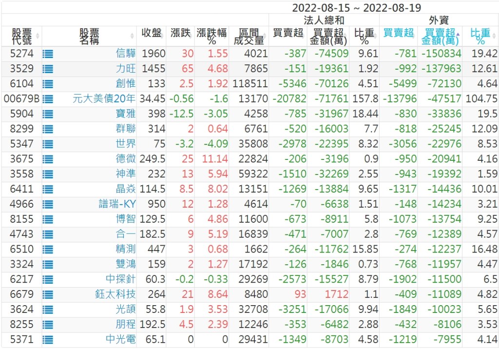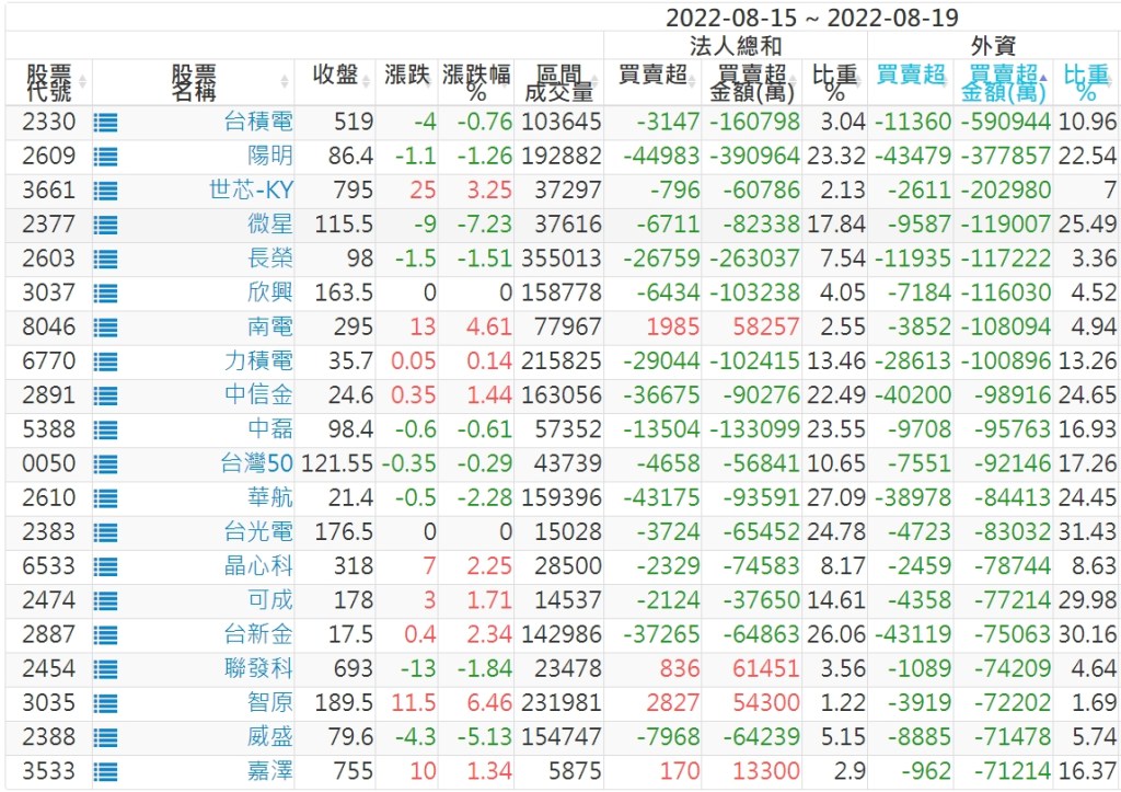 2022/08/15~2022/08/19近5日【外資】買賣超 2022-08-21 股狗網小編 投資誌-大盤 發表留言 投資達人APP上線囉!!!『安裝APP』: 外資本周累積【賣超】約277億元。 【上市外資買超個股】(以金額排行,單位:萬) 【上市外資賣超個股】(以金額排行,單位:萬) 【上櫃外資買超個股】(以金額排行,單位:萬) 【上櫃外資賣超個股】(以金額排行,單位:萬) 免責宣言 本網站文章所提供資訊僅供參考,並無任何推介買賣之意,投資人應自行承擔交易風險。 分享此文: 按一下即可分享至 X(在新視窗中開啟) X 按一下以分享至 Facebook(在新視窗中開啟) Facebook 喜歡 正在載入...