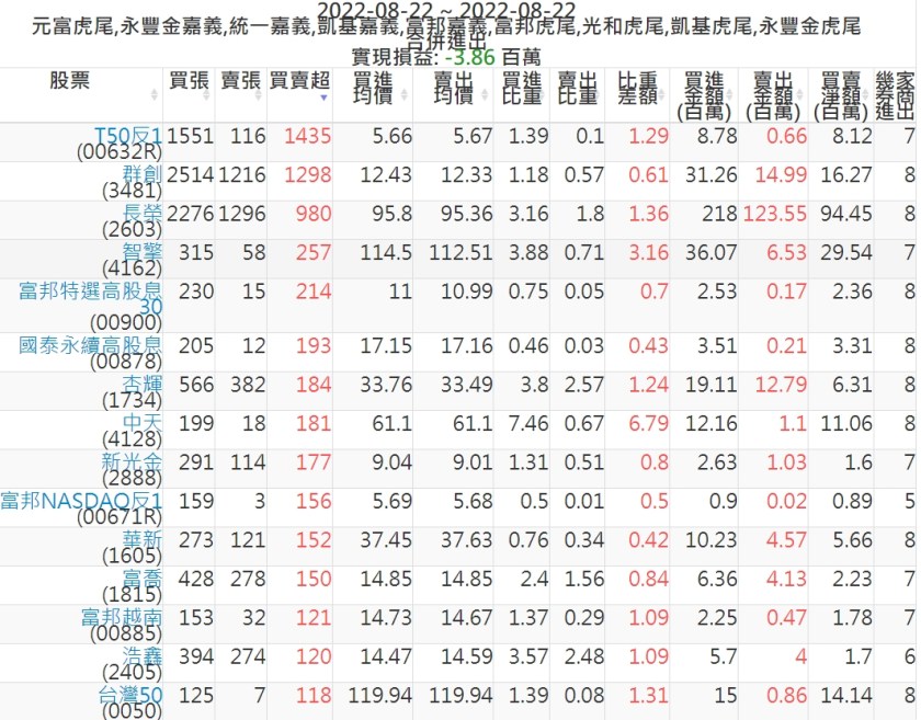 2022-0822主力買賣超個股 2022-08-23 股狗網小編 籌碼面每日資訊 發表留言 投資達人APP上線囉!!!『安裝APP』: 可參考下文 『如何查詢當沖、隔日沖分公司券商買賣』 主力當沖券商: 『元富虎尾』,『永豐金嘉義』,『統一嘉義』,『凱基嘉義』,『富邦嘉義』,『富邦虎尾』,『光和虎尾』,『凱基虎尾』,『永豐金虎尾』。 『當沖標的』 『買超股票』 『賣超股票』 免責宣言 本網站文章所提供資訊僅供參考,並無任何推介買賣之意,投資人應自行承擔交易風險。 分享此文: 按一下即可分享至 X(在新視窗中開啟) X 按一下以分享至 Facebook(在新視窗中開啟) Facebook 喜歡 正在載入...