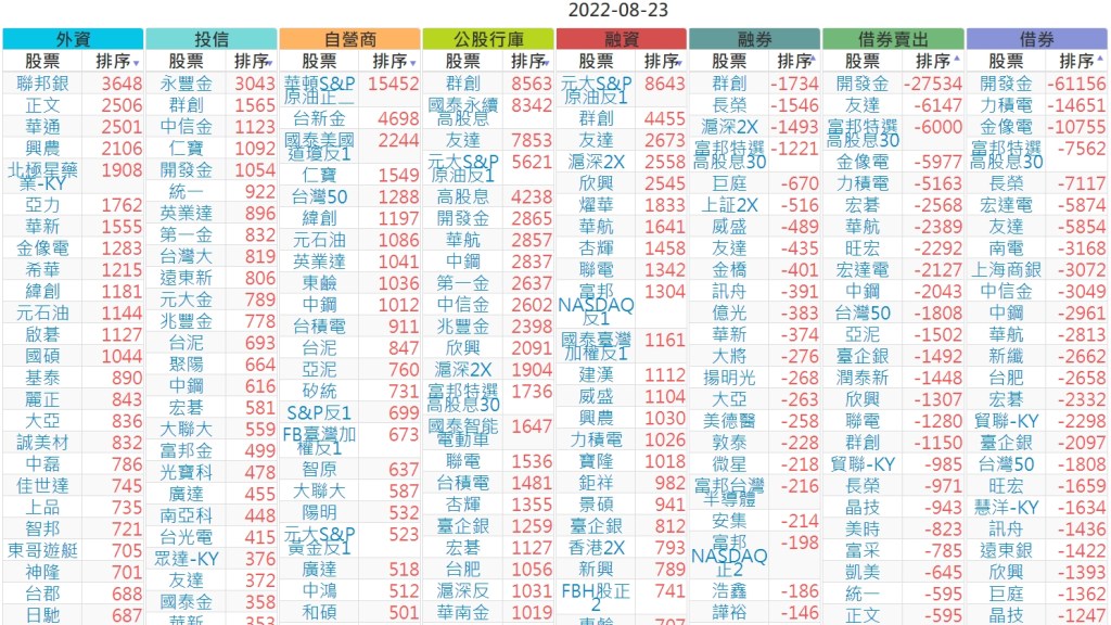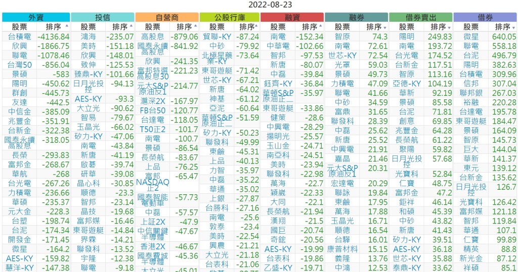 2022-0823上市【外資、投信】買賣超個股 2022-08-24 股狗網小編 投資誌-大盤 發表留言 投資達人APP上線囉!!!『安裝APP』 上市:【外資、投信】買超(依金額) (單位:百萬) 上市:【外資、投信】賣超(依金額) (單位:百萬) 上市:【外資、投信】買超(依張數) (單位:張數) 上市:【外資、投信】賣超(依張數) (單位:張數) 免責宣言 本網站文章所提供資訊僅供參考,並無任何推介買賣之意,投資人應自行承擔交易風險。 分享此文: 按一下即可分享至 X(在新視窗中開啟) X 按一下以分享至 Facebook(在新視窗中開啟) Facebook 喜歡 正在載入...