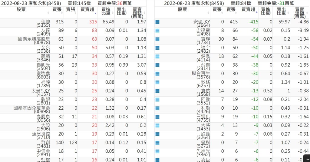 2022-0823關鍵券商買賣超 2022-08-24 股狗網小編 籌碼面每日資訊 發表留言 投資達人APP上線囉!!!『安裝APP』: 關鍵券商買賣超: 臺銀證券(1040): 台灣摩根士丹利(1470): 凱基台北(9268): 凱基信義(9216): 元大土城永寧(9875): 康和永和(845B) : 富邦建國(9658): 免責宣言 本網站文章所提供資訊僅供參考,並無任何推介買賣之意,投資人應自行承擔交易風險。 分享此文: 按一下即可分享至 X(在新視窗中開啟) X 按一下以分享至 Facebook(在新視窗中開啟) Facebook 喜歡 正在載入...