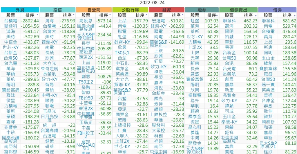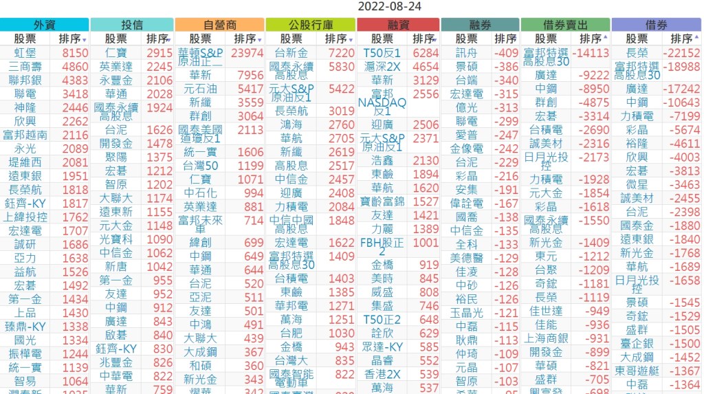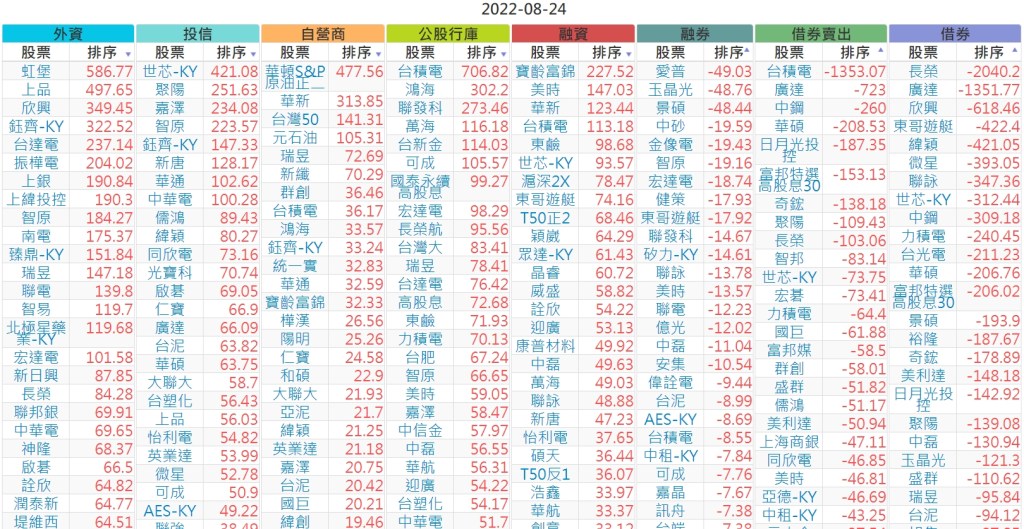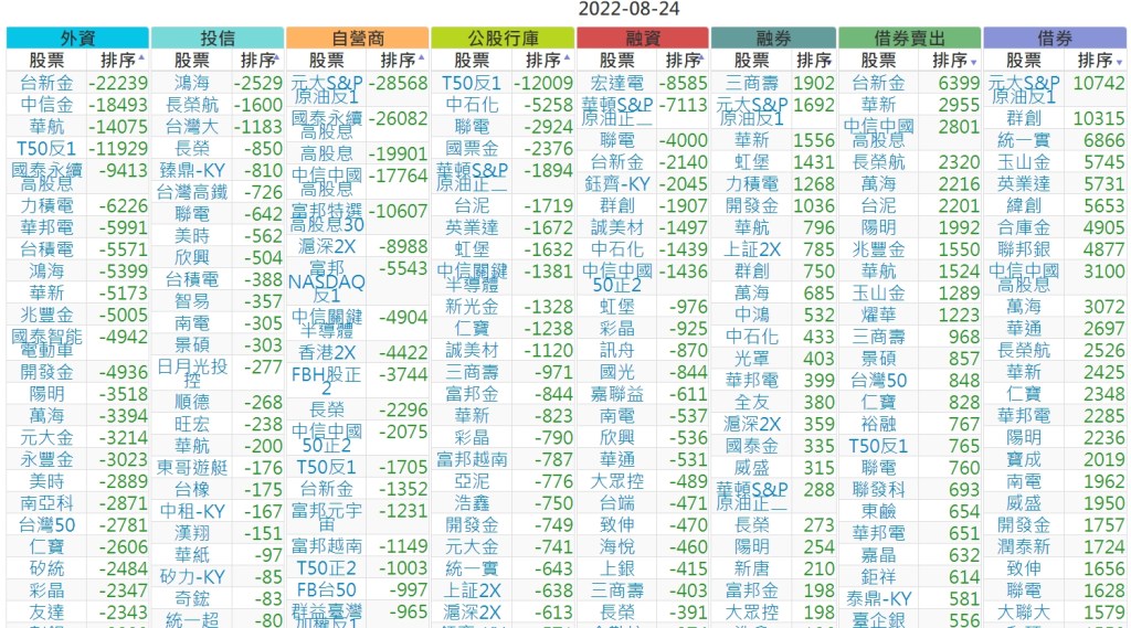 2022-0824上市【外資、投信】買賣超個股 2022-08-25 股狗網小編 投資誌-大盤 發表留言 投資達人APP上線囉!!!『安裝APP』 上市:【外資、投信】買超(依金額) (單位:百萬) 上市:【外資、投信】賣超(依金額) (單位:百萬) 上市:【外資、投信】買超(依張數) (單位:張數) 上市:【外資、投信】賣超(依張數) (單位:張數) 免責宣言 本網站文章所提供資訊僅供參考,並無任何推介買賣之意,投資人應自行承擔交易風險。 分享此文: 分享到 X(在新視窗中開啟) X 分享到 Facebook(在新視窗中開啟) Facebook 喜歡 正在載入...