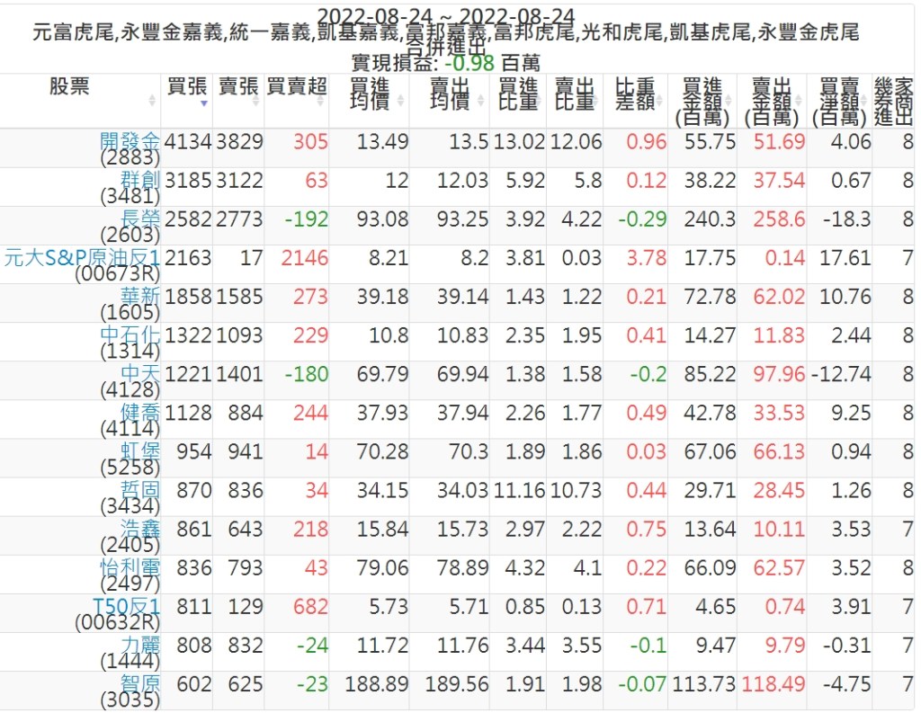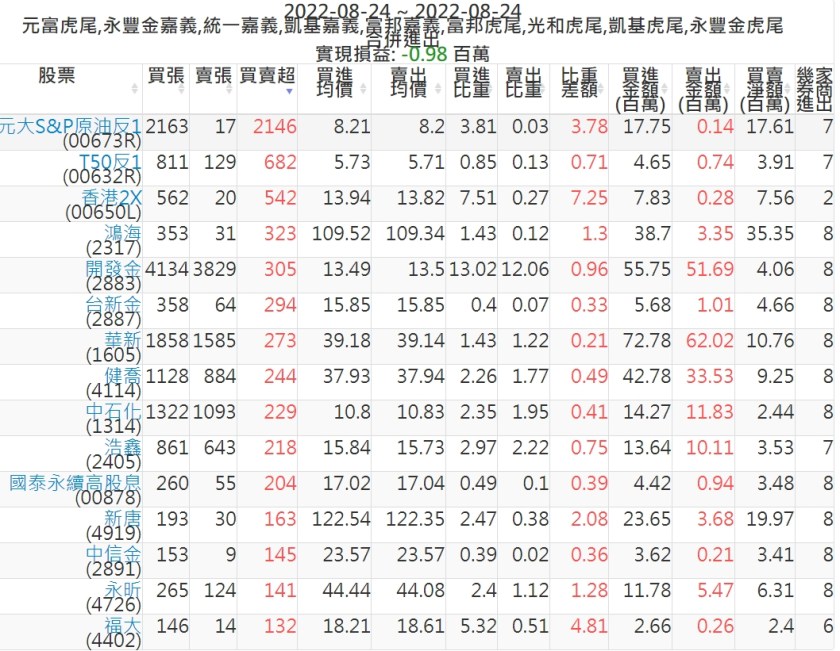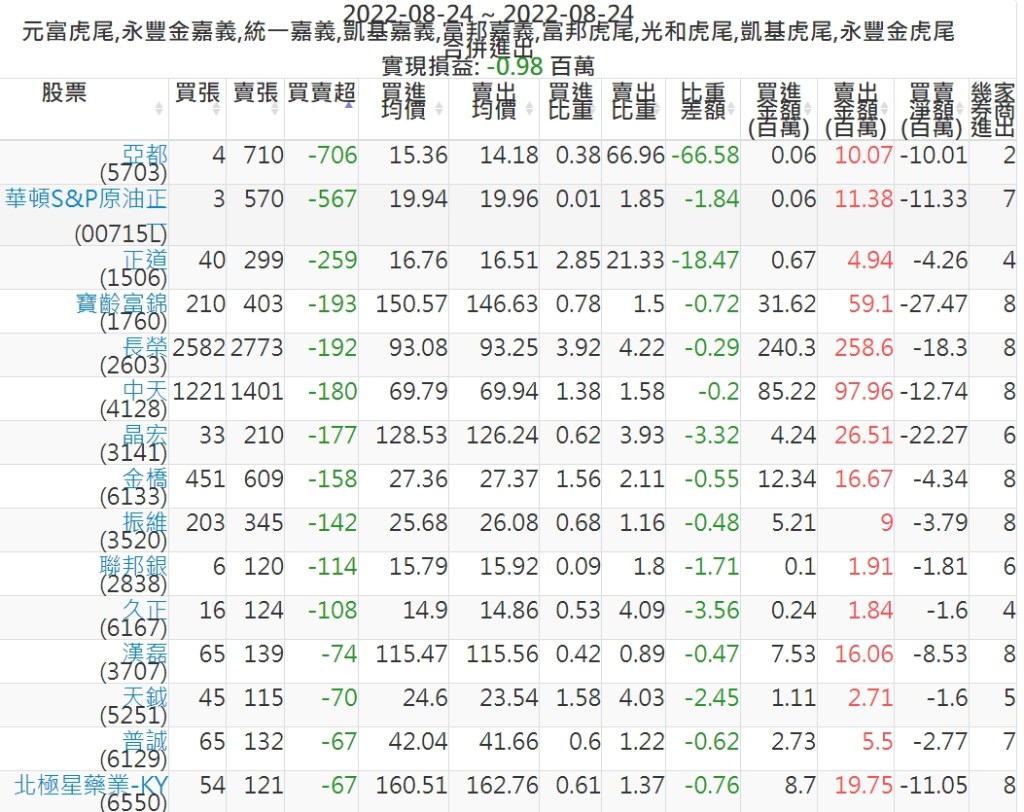 2022-0824主力買賣超個股 2022-08-25 股狗網小編 籌碼面每日資訊 發表留言 投資達人APP上線囉!!!『安裝APP』: 可參考下文 『如何查詢當沖、隔日沖分公司券商買賣』 主力當沖券商: 『元富虎尾』,『永豐金嘉義』,『統一嘉義』,『凱基嘉義』,『富邦嘉義』,『富邦虎尾』,『光和虎尾』,『凱基虎尾』,『永豐金虎尾』。 『當沖標的』 『買超股票』 『賣超股票』 免責宣言 本網站文章所提供資訊僅供參考,並無任何推介買賣之意,投資人應自行承擔交易風險。 分享此文: 按一下即可分享至 X(在新視窗中開啟) X 按一下以分享至 Facebook(在新視窗中開啟) Facebook 喜歡 正在載入...