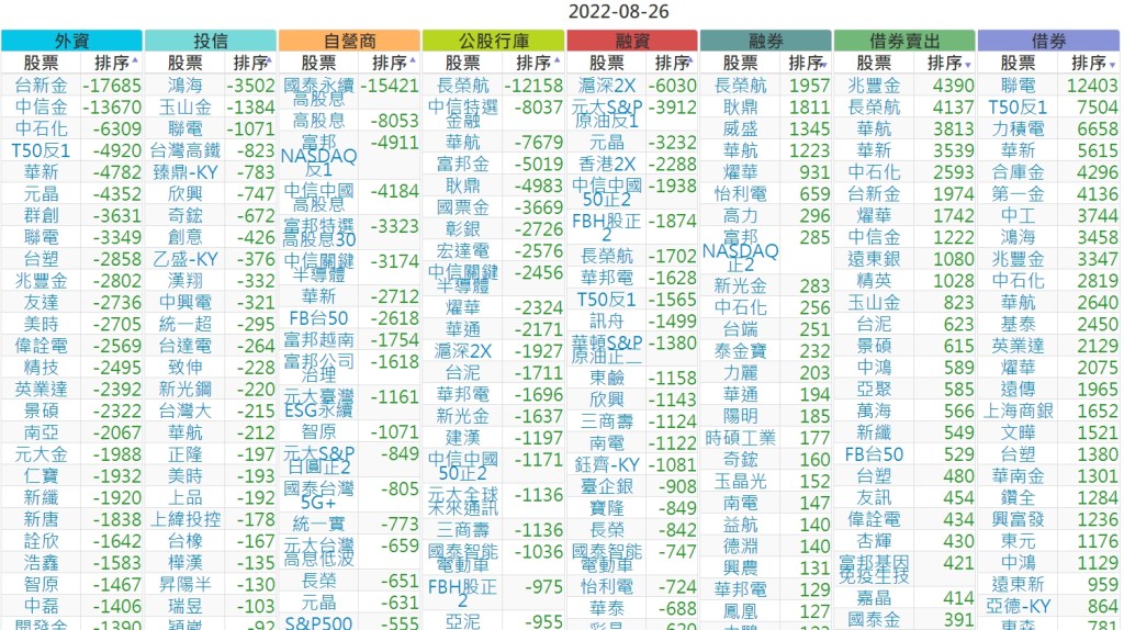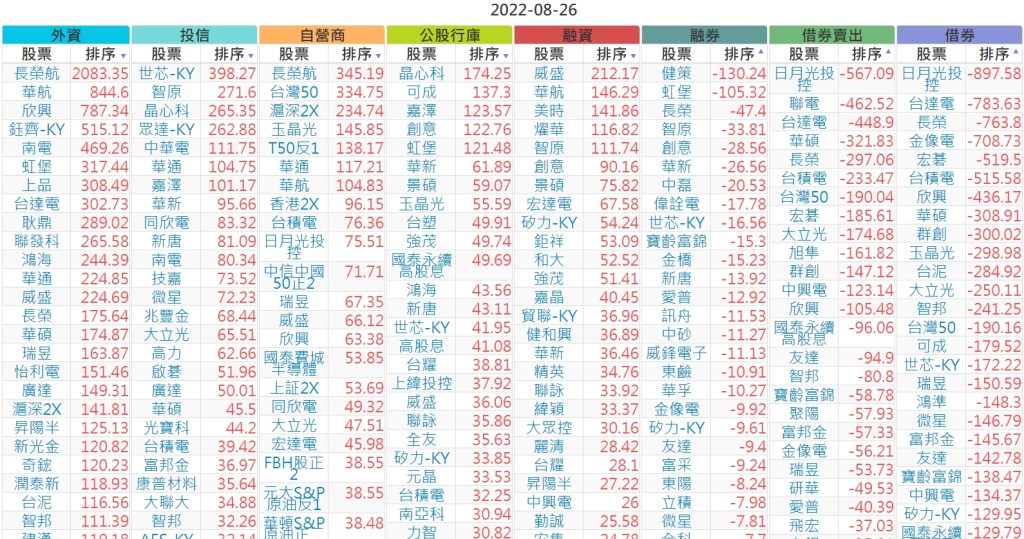 2022-0826上市【外資、投信】買賣超個股 2022-08-27 股狗網小編 投資誌-大盤 發表留言 投資達人APP上線囉!!!『安裝APP』 上市:【外資、投信】買超(依金額) (單位:百萬) 上市:【外資、投信】賣超(依金額) (單位:百萬) 上市:【外資、投信】買超(依張數) (單位:張數) 上市:【外資、投信】賣超(依張數) (單位:張數) 免責宣言 本網站文章所提供資訊僅供參考,並無任何推介買賣之意,投資人應自行承擔交易風險。 分享此文: 按一下即可分享至 X(在新視窗中開啟) X 按一下以分享至 Facebook(在新視窗中開啟) Facebook 喜歡 正在載入...