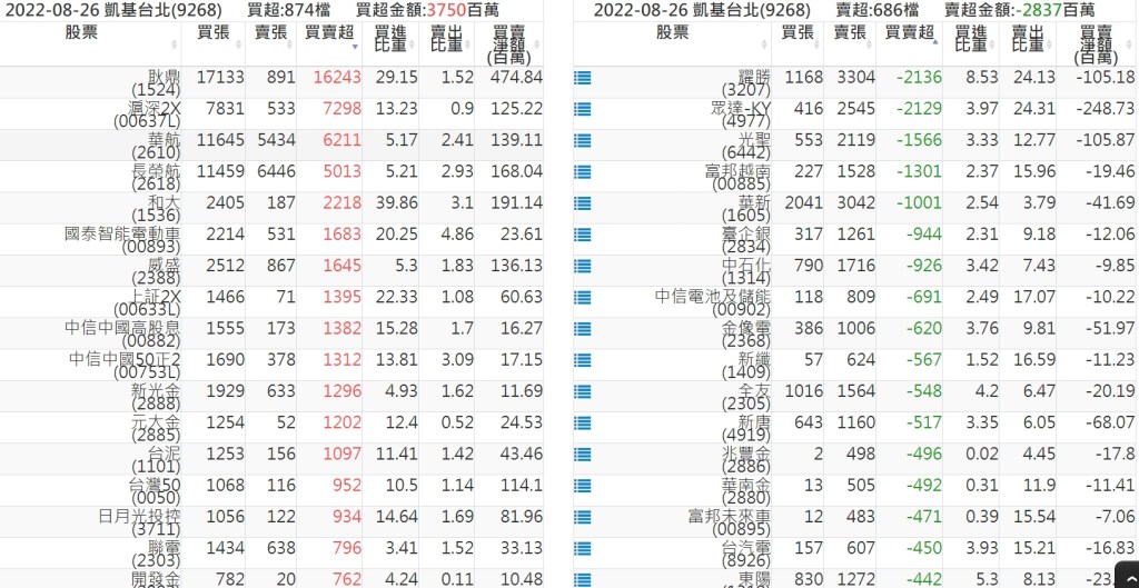 2022-0826關鍵券商買賣超 2022-08-27 股狗網小編 籌碼面每日資訊 發表留言 投資達人APP上線囉!!!『安裝APP』: 關鍵券商買賣超: 臺銀證券(1040): 台灣摩根士丹利(1470): 凱基台北(9268): 凱基信義(9216): 元大土城永寧(9875): 康和永和(845B) : 富邦建國(9658): 免責宣言 本網站文章所提供資訊僅供參考,並無任何推介買賣之意,投資人應自行承擔交易風險。 分享此文: 按一下即可分享至 X(在新視窗中開啟) X 按一下以分享至 Facebook(在新視窗中開啟) Facebook 喜歡 正在載入...