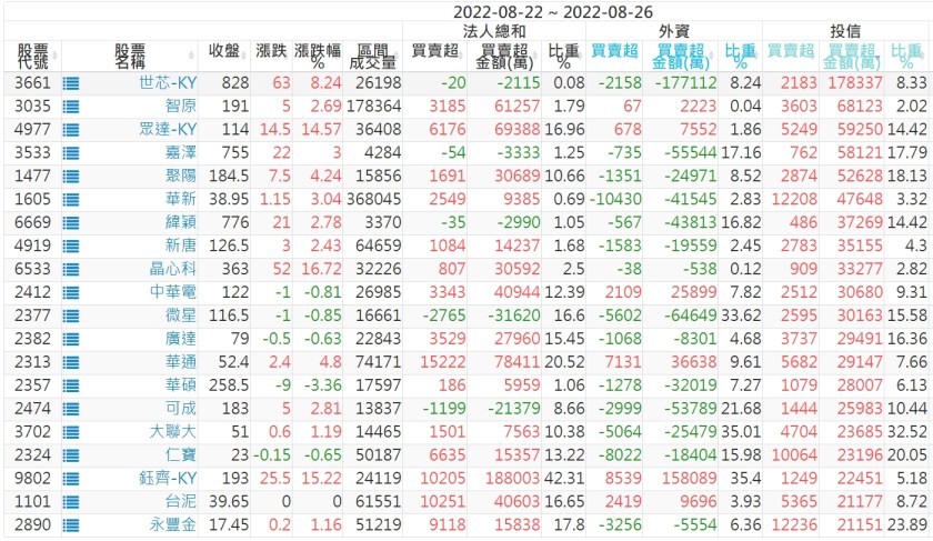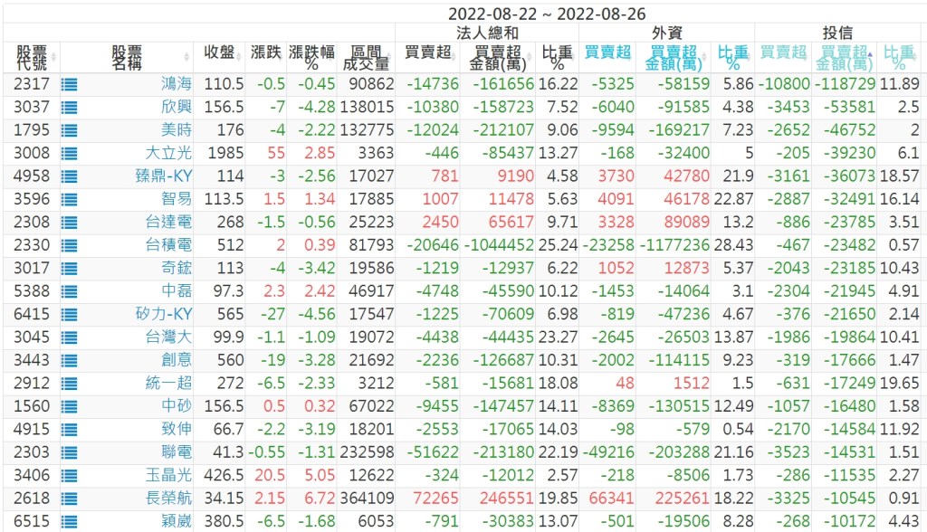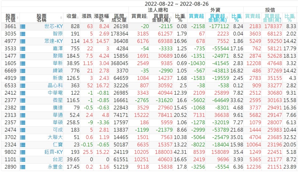 2022/08/22~2022/08/26近5日【投信】買賣超個股 2022-08-28 股狗網小編 投資誌-大盤 發表留言 投資達人APP上線囉!!!『安裝APP』: 【上市投信買超個股】(以金額排行,單位:萬) 【上市投信賣超個股】(以金額排行,單位:萬) 【上櫃投信買超個股】(以金額排行,單位:萬) 【上櫃投信賣超個股】(以金額排行,單位:萬) 免責宣言 本網站文章所提供資訊僅供參考,並無任何推介買賣之意,投資人應自行承擔交易風險。 分享此文: 分享到 X(在新視窗中開啟) X 分享到 Facebook(在新視窗中開啟) Facebook 喜歡 正在載入...