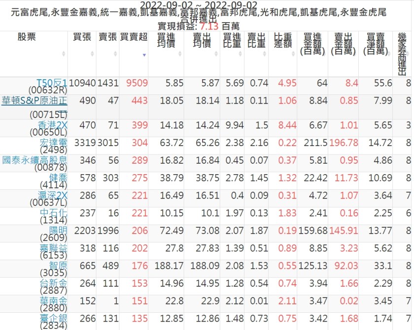 2022-0902主力買賣超個股 2022-09-03 股狗網小編 籌碼面每日資訊 發表留言 投資達人APP上線囉!!!『安裝APP』: 可參考下文 『如何查詢當沖、隔日沖分公司券商買賣』 主力當沖券商: 『元富虎尾』,『永豐金嘉義』,『統一嘉義』,『凱基嘉義』,『富邦嘉義』,『富邦虎尾』,『光和虎尾』,『凱基虎尾』,『永豐金虎尾』。 『當沖標的』 『買超股票』 『賣超股票』 免責宣言 本網站文章所提供資訊僅供參考,並無任何推介買賣之意,投資人應自行承擔交易風險。 分享此文: 按一下即可分享至 X(在新視窗中開啟) X 按一下以分享至 Facebook(在新視窗中開啟) Facebook 喜歡 正在載入...
