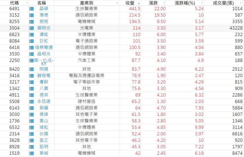 2022-0902股價創20日新高爆量上漲股 2022-09-03 股狗網小編 選股條件 發表留言 投資達人APP上線囉!!!『安裝APP』: 利用股狗選股的選股條件可以【挑選突破20日新高,爆量上漲起漲點股票】 1.股狗選股 https://www.stockdog.com.tw 2.選股條件: a.收盤價創20日新高 b.當日漲幅 > 2% 免責宣言 本網站文章所提供資訊僅供參考,並無任何推介買賣之意,投資人應自行承擔交易風險。 分享此文: 按一下即可分享至 X(在新視窗中開啟) X 按一下以分享至 Facebook(在新視窗中開啟) Facebook 喜歡 正在載入...