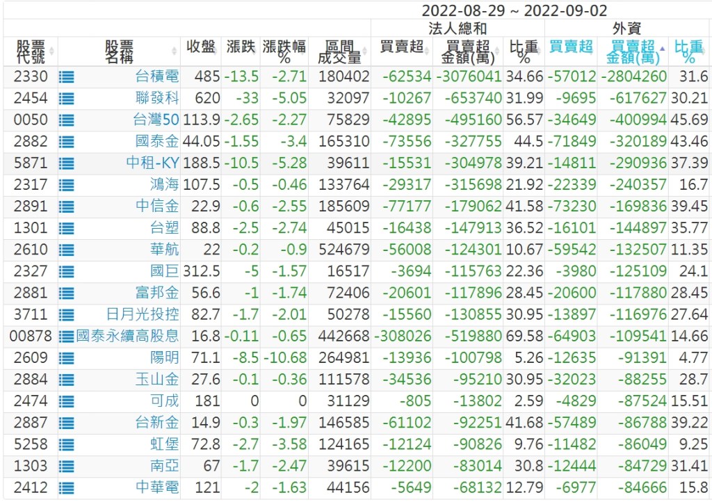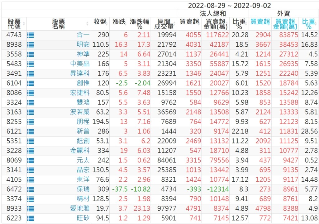 2022/08/29~2022/09/02近5日【外資】買賣超個股 2022-09-04 股狗網小編 投資誌-大盤 發表留言 投資達人APP上線囉!!!『安裝APP』: 外資本周累積【賣超】約880億元。 【上市外資買超個股】(以金額排行,單位:萬) 【上市外資賣超個股】(以金額排行,單位:萬) 【上櫃外資買超個股】(以金額排行,單位:萬) 【上櫃外資賣超個股】(以金額排行,單位:萬) 免責宣言 本網站文章所提供資訊僅供參考,並無任何推介買賣之意,投資人應自行承擔交易風險。 分享此文: 按一下即可分享至 X(在新視窗中開啟) X 按一下以分享至 Facebook(在新視窗中開啟) Facebook 喜歡 正在載入...