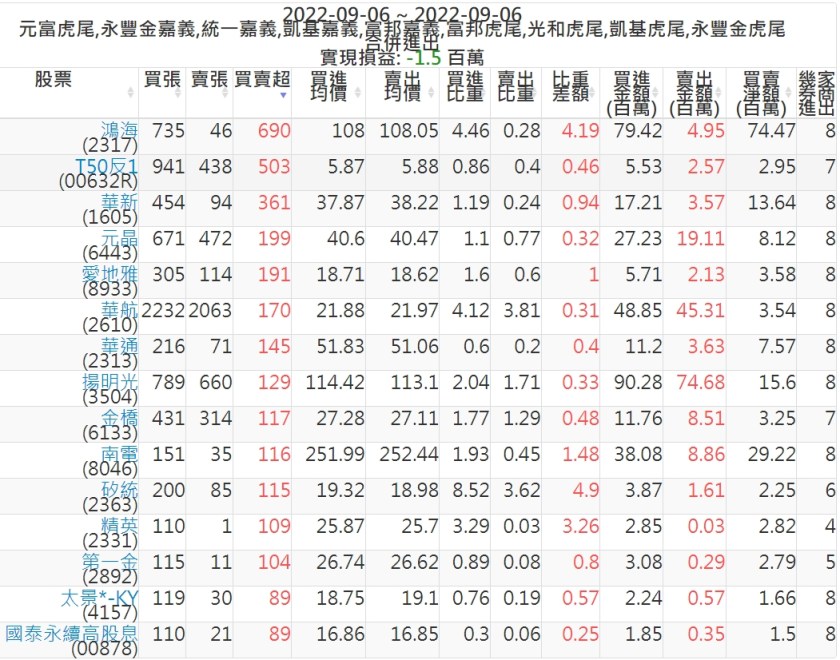 2022-0906主力買賣超個股 2022-09-07 股狗網小編 籌碼面每日資訊 發表留言 投資達人APP上線囉!!!『安裝APP』: 可參考下文 『如何查詢當沖、隔日沖分公司券商買賣』 主力當沖券商: 『元富虎尾』,『永豐金嘉義』,『統一嘉義』,『凱基嘉義』,『富邦嘉義』,『富邦虎尾』,『光和虎尾』,『凱基虎尾』,『永豐金虎尾』。 『當沖標的』 『買超股票』 『賣超股票』 免責宣言 本網站文章所提供資訊僅供參考,並無任何推介買賣之意,投資人應自行承擔交易風險。 分享此文: 按一下即可分享至 X(在新視窗中開啟) X 按一下以分享至 Facebook(在新視窗中開啟) Facebook 喜歡 正在載入...