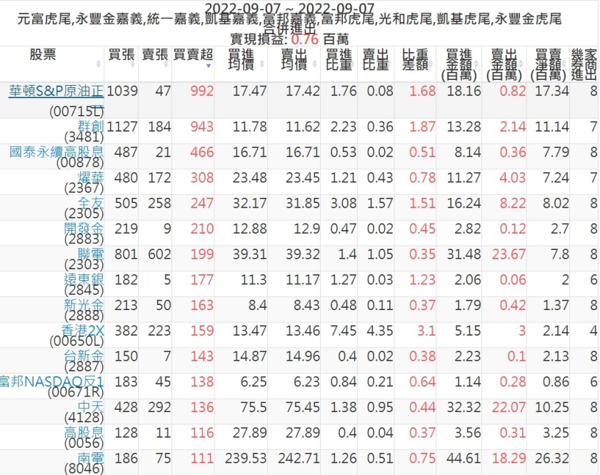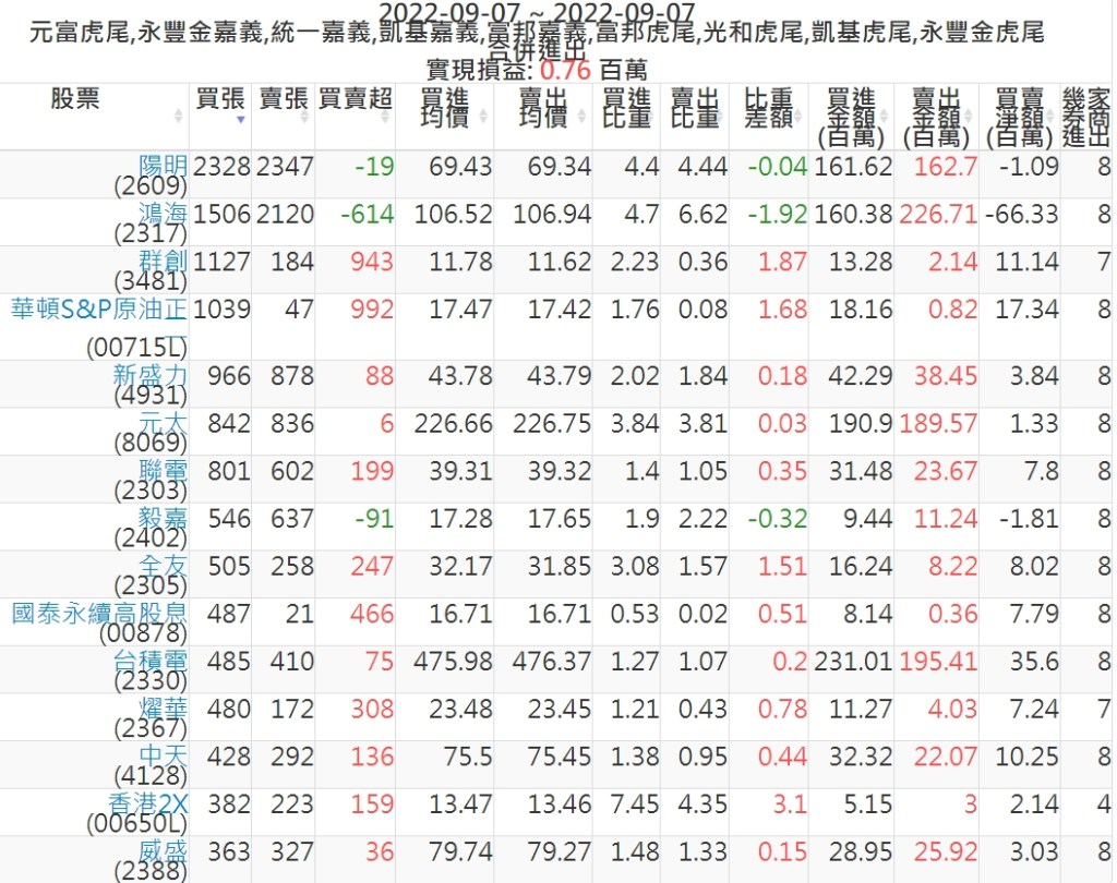 2022-0907主力買賣超個股 2022-09-08 aindex168 籌碼面每日資訊 發表留言 投資達人APP上線囉!!!『安裝APP』: 可參考下文 『如何查詢當沖、隔日沖分公司券商買賣』 主力當沖券商: 『元富虎尾』,『永豐金嘉義』,『統一嘉義』,『凱基嘉義』,『富邦嘉義』,『富邦虎尾』,『光和虎尾』,『凱基虎尾』,『永豐金虎尾』。 『當沖標的』 『買超股票』 『賣超股票』 免責宣言 本網站文章所提供資訊僅供參考,並無任何推介買賣之意,投資人應自行承擔交易風險。 分享此文: 按一下即可分享至 X(在新視窗中開啟) X 按一下以分享至 Facebook(在新視窗中開啟) Facebook 喜歡 正在載入...
