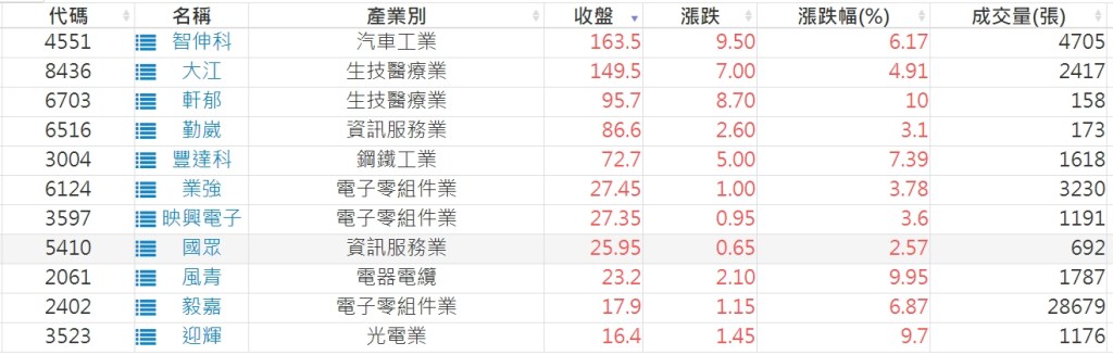 2022-0907股價創20日新高爆量上漲股 2022-09-08 股狗網小編 選股條件 發表留言 投資達人APP上線囉!!!『安裝APP』: 利用股狗選股的選股條件可以【挑選突破20日新高,爆量上漲起漲點股票】 1.股狗選股 https://www.stockdog.com.tw 2.選股條件: a.收盤價創20日新高 b.當日漲幅 > 2% 免責宣言 本網站文章所提供資訊僅供參考,並無任何推介買賣之意,投資人應自行承擔交易風險。 分享此文: 分享到 X(在新視窗中開啟) X 分享到 Facebook(在新視窗中開啟) Facebook 喜歡 正在載入...