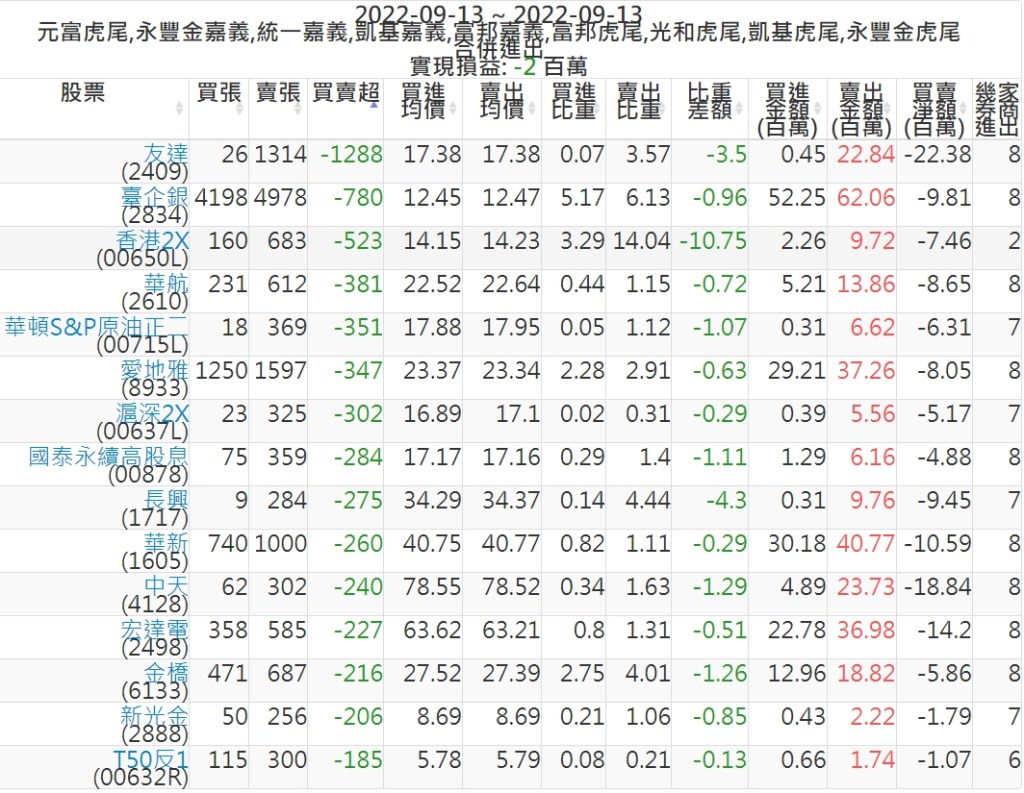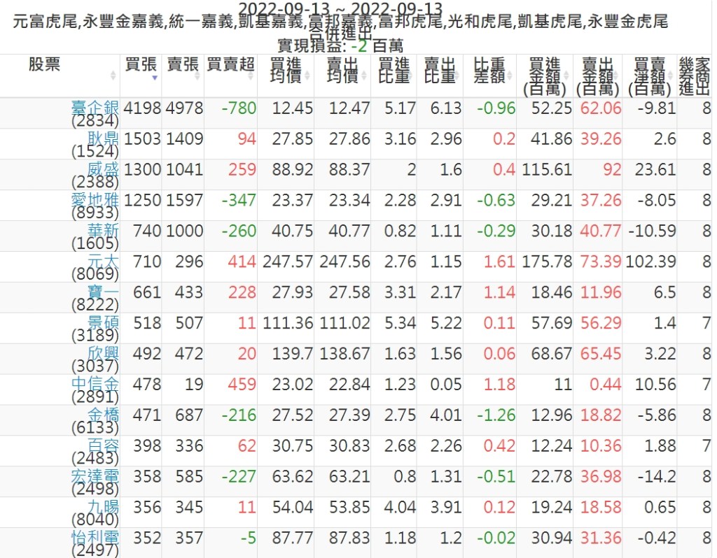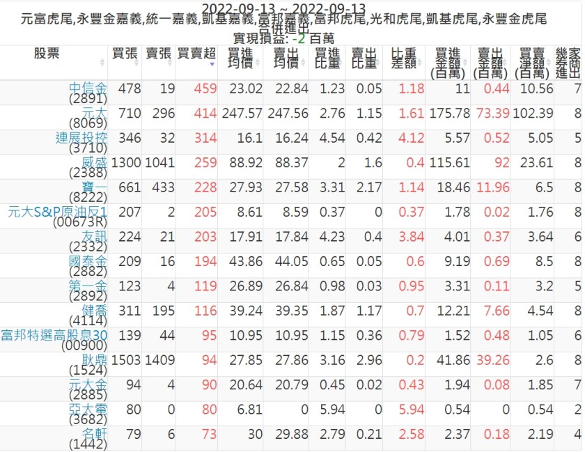 2022-0913主力買賣超個股 2022-09-14 股狗網小編 籌碼面每日資訊 發表留言 投資達人APP上線囉!!!『安裝APP』: 可參考下文 『如何查詢當沖、隔日沖分公司券商買賣』 主力當沖券商: 『元富虎尾』,『永豐金嘉義』,『統一嘉義』,『凱基嘉義』,『富邦嘉義』,『富邦虎尾』,『光和虎尾』,『凱基虎尾』,『永豐金虎尾』。 『當沖標的』 『買超股票』 『賣超股票』 免責宣言 本網站文章所提供資訊僅供參考,並無任何推介買賣之意,投資人應自行承擔交易風險。 分享此文: 按一下即可分享至 X(在新視窗中開啟) X 按一下以分享至 Facebook(在新視窗中開啟) Facebook 喜歡 正在載入...