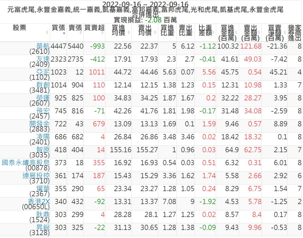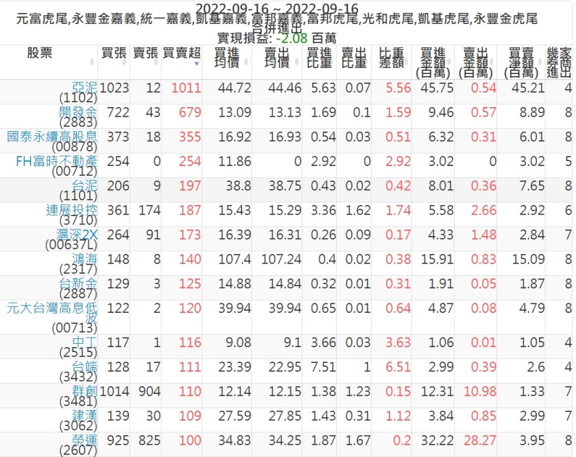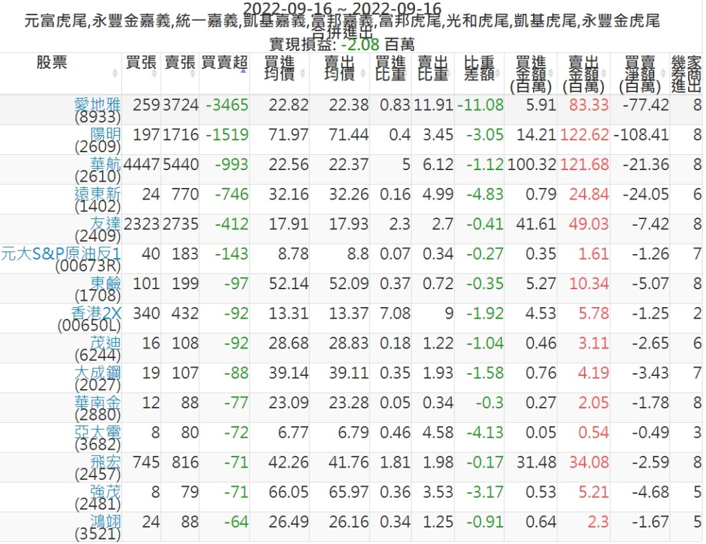 2022-0916主力買賣超個股 2022-09-17 股狗網小編 籌碼面每日資訊 發表留言 投資達人APP上線囉!!!『安裝APP』: 可參考下文 『如何查詢當沖、隔日沖分公司券商買賣』 主力當沖券商: 『元富虎尾』,『永豐金嘉義』,『統一嘉義』,『凱基嘉義』,『富邦嘉義』,『富邦虎尾』,『光和虎尾』,『凱基虎尾』,『永豐金虎尾』。 『當沖標的』 『買超股票』 『賣超股票』 免責宣言 本網站文章所提供資訊僅供參考,並無任何推介買賣之意,投資人應自行承擔交易風險。 分享此文: 按一下即可分享至 X(在新視窗中開啟) X 按一下以分享至 Facebook(在新視窗中開啟) Facebook 喜歡 正在載入...