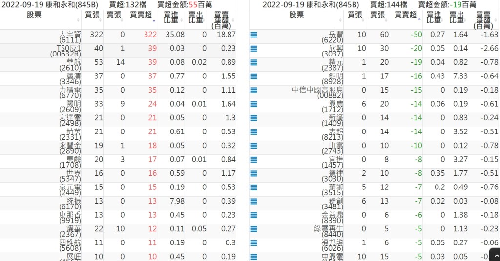 2022-0919關鍵券商買賣超 2022-09-20 股狗網小編 籌碼面每日資訊 發表留言 投資達人APP上線囉!!!『安裝APP』: 關鍵券商買賣超: 臺銀證券(1040): 台灣摩根士丹利(1470): 凱基台北(9268): 凱基信義(9216): 元大土城永寧(9875): 康和永和(845B) : 富邦建國(9658): 免責宣言 本網站文章所提供資訊僅供參考,並無任何推介買賣之意,投資人應自行承擔交易風險。 分享此文: 按一下即可分享至 X(在新視窗中開啟) X 按一下以分享至 Facebook(在新視窗中開啟) Facebook 喜歡 正在載入...